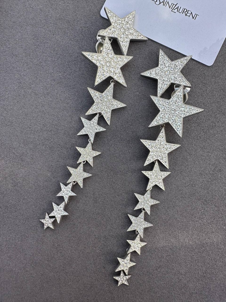 Клипсы Yves Saint Laurent LUX-119798 – это роскошное украшение, представляющее собой элегантный аксессуар для завершения образа. Клипсы выполнены в виде каскада звезд, инкрустированных сверкающими элементами. Идеально подойдут для особых случаев, добавляя нотку гламура и изысканности.