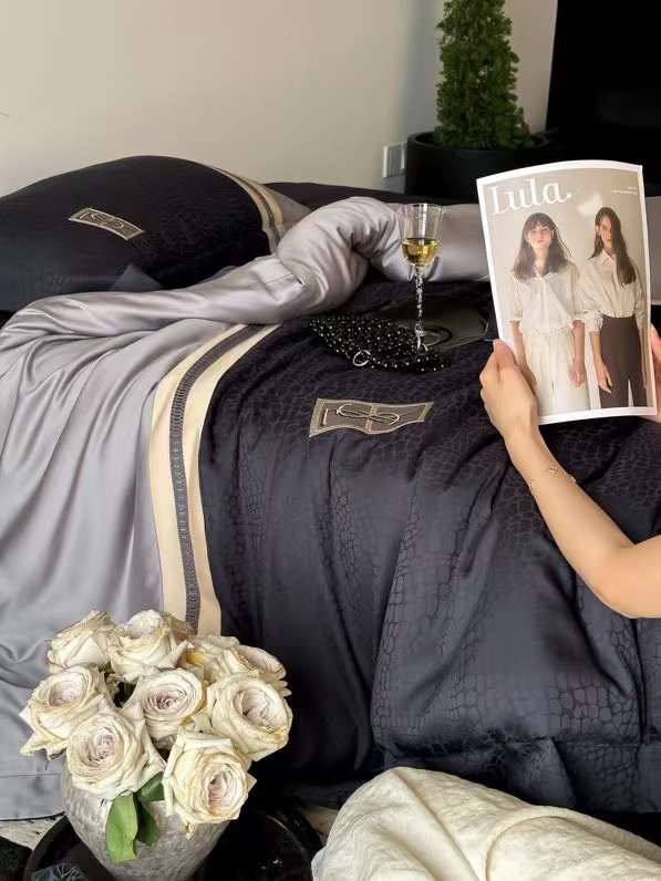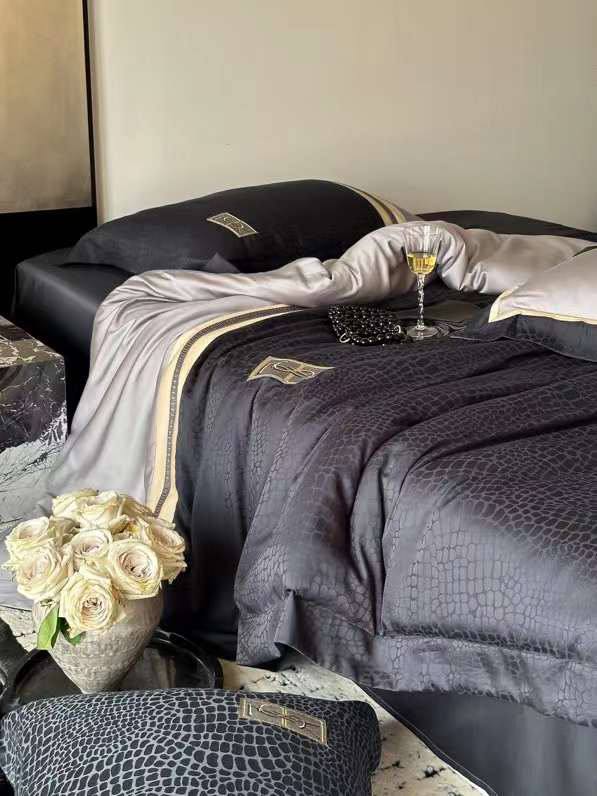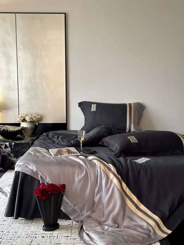 Комплект постельного белья Yves Saint Laurent LUX-108957 — это воплощение роскоши и элегантности. Дизайн постельного белья сочетает в себе современный стиль с изысканными деталями. Комплект выполнен в темных тонах с акцентом на текстуру, создавая атмосферу уюта и роскоши в спальне.