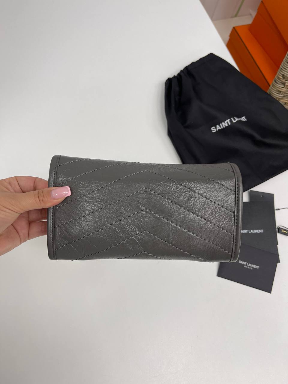 Кошелёк Yves Saint Laurent LUX-92417 представляет собой стильный аксессуар для повседневного использования. Кошелёк выполнен в сером цвете с характерной стёганой текстурой. Дизайн кошелька сочетает в себе элегантность и практичность.