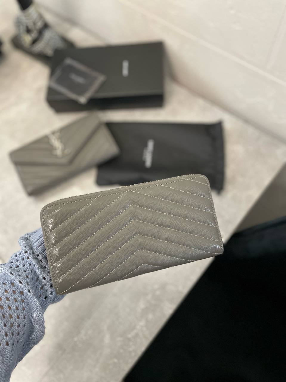 Кошелёк Yves Saint Laurent LUX-98148 — элегантный аксессуар в фирменном стиле модного дома. Серый цвет, фирменный логотип, прострочка и лаконичный дизайн делают его универсальным дополнением к любому образу. Кошелек идеально подходит для хранения денег, карт и других мелких предметов.
