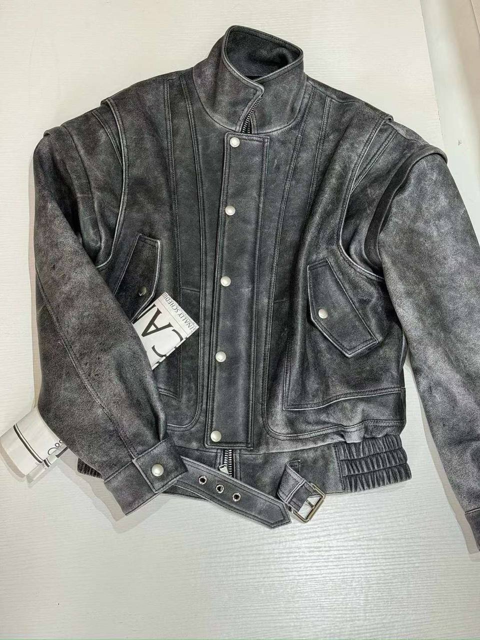 Кожаная куртка Yves Saint Laurent LUX-105204 — стильная куртка в винтажном стиле, выполненная в оттенках серого цвета. Куртка имеет выраженную текстуру, придающую ей особый шарм. Идеально подходит для создания повседневных образов, подчеркивая индивидуальность своего обладателя.