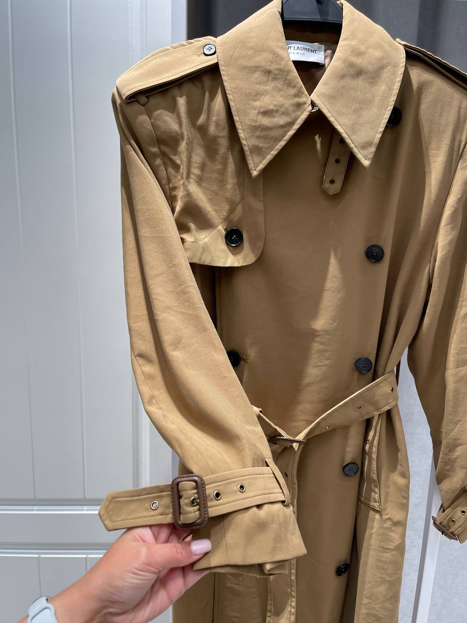 Стильный бежевый плащ Yves Saint Laurent – элегантная и практичная верхняя одежда для современной женщины. Классический крой и качественные материалы создают неповторимый образ.