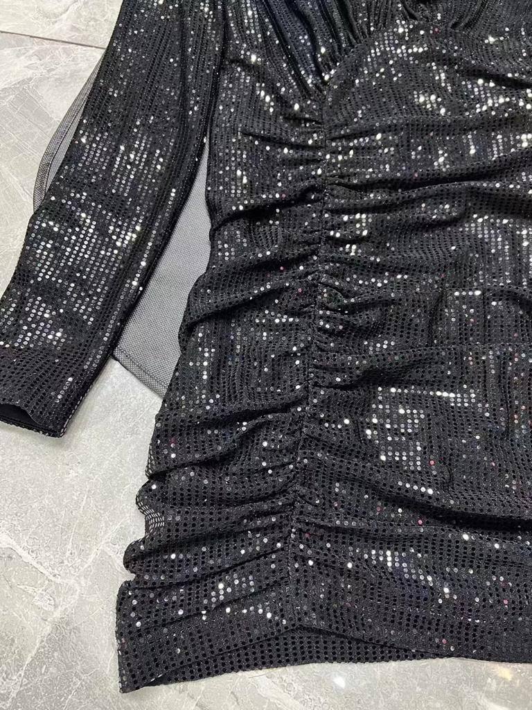 Платье Yves Saint Laurent LUX-82658 – это элегантное вечернее платье черного цвета, декорированное блестящими элементами. Оно выполнено в облегающем силуэте, с V-образным вырезом и длинными рукавами. Идеально подходит для создания яркого и запоминающегося образа на любом торжественном мероприятии.