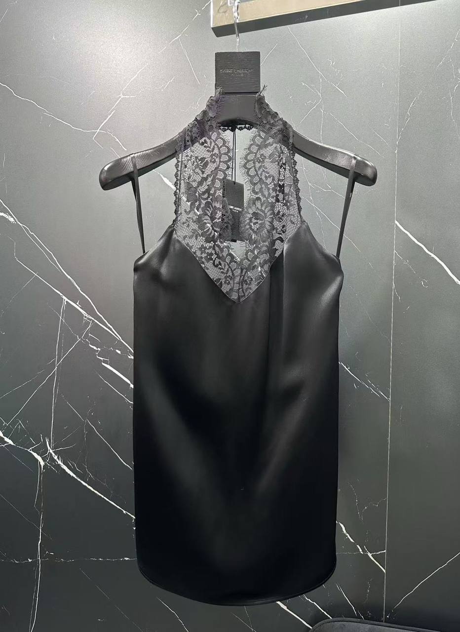 Платье Yves Saint Laurent LUX-115036 - это элегантное черное платье-мини в стиле минимализм. Облегающий силуэт с открытой спиной и кружевной отделкой на лифе создает изысканный образ для особых случаев. Платье идеально подходит для вечерних выходов, подчеркивая женственность и утонченность.