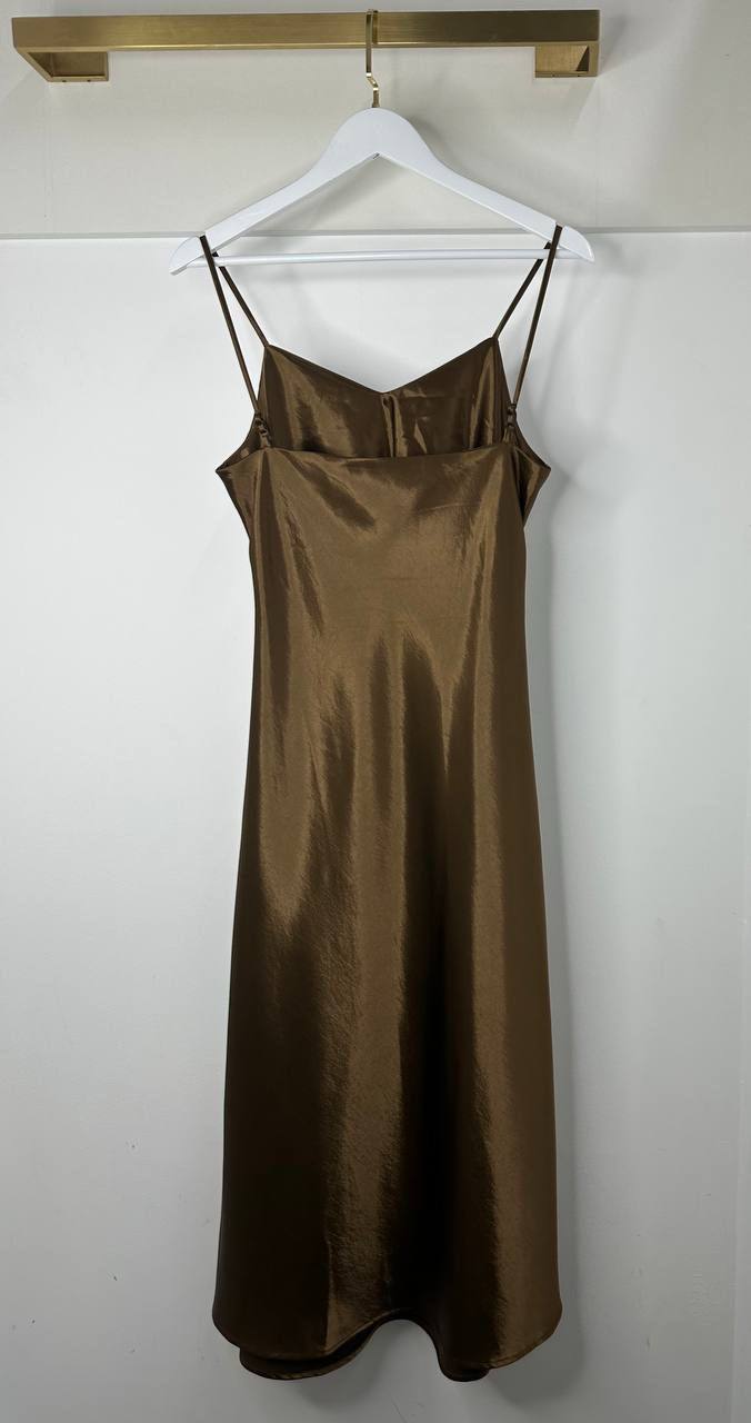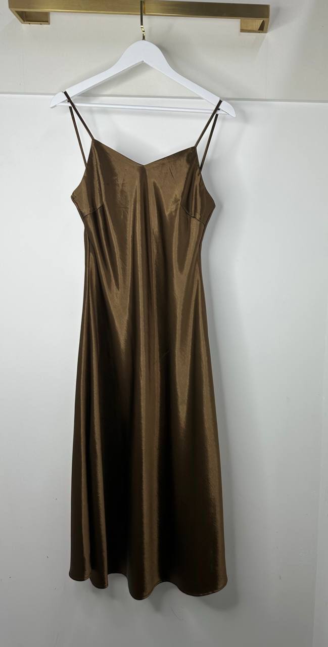 Платье Yves Saint Laurent LUX-119708 — это элегантное платье в стиле минимализма, выполненное в роскошном бронзовом цвете. Оно имеет прямой силуэт и тонкие бретели, что придает образу женственность и легкость. Платье идеально подойдет для создания вечерних образов.