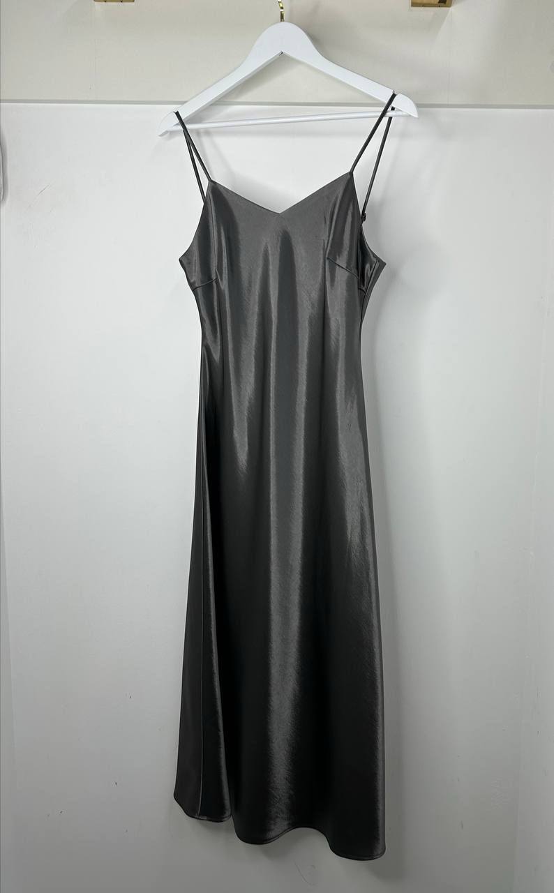 Платье Yves Saint Laurent LUX-119710 - это элегантное платье на тонких бретелях, выполненное в минималистичном стиле. Его глубокий серый цвет придает изделию изысканный вид, а струящийся силуэт создает ощущение легкости и комфорта. Платье идеально подходит для вечерних выходов.