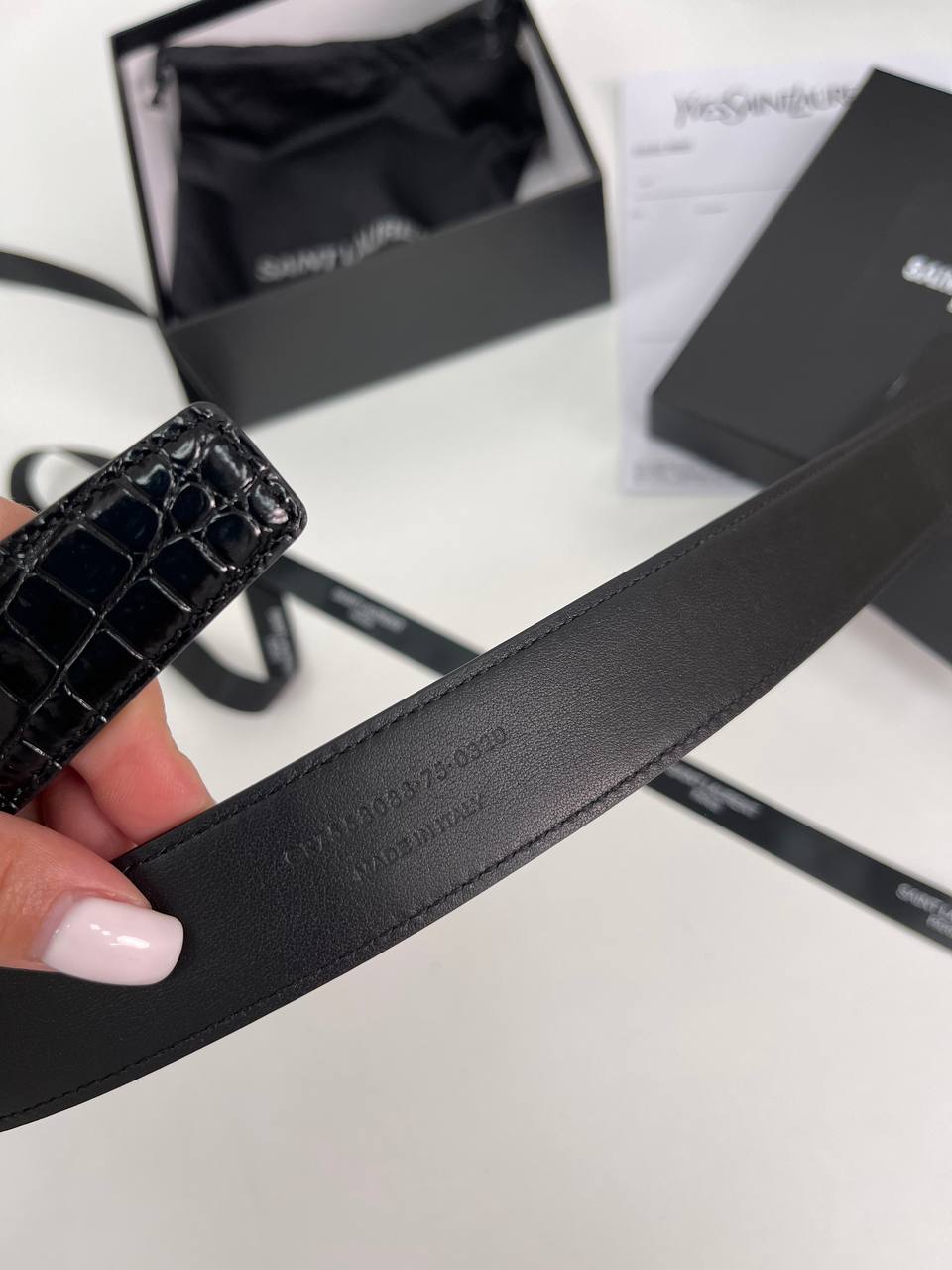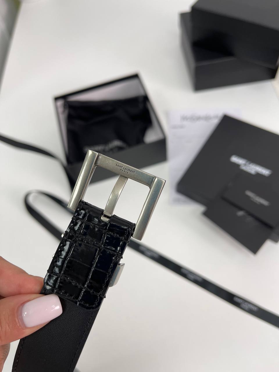 Ремень Yves Saint Laurent LUX-91789 - это элегантный аксессуар для стильного образа. Чёрный ремень с текстурой под крокодиловую кожу, украшен серебристой пряжкой с логотипом бренда. Этот ремень станет отличным дополнением к любому наряду, подчеркивая индивидуальность и вкус.