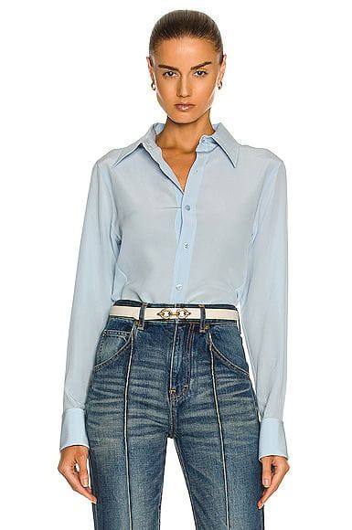 Рубашка Yves Saint Laurent (арт. LUX-71569) - это воплощение элегантности и стиля. Небесно-голубой цвет рубашки придает ей свежий и утонченный вид, идеально подходящий для создания как повседневных, так и более формальных образов. Рубашка выполнена в классическом стиле, подчеркивая безупречный вкус обладателя.