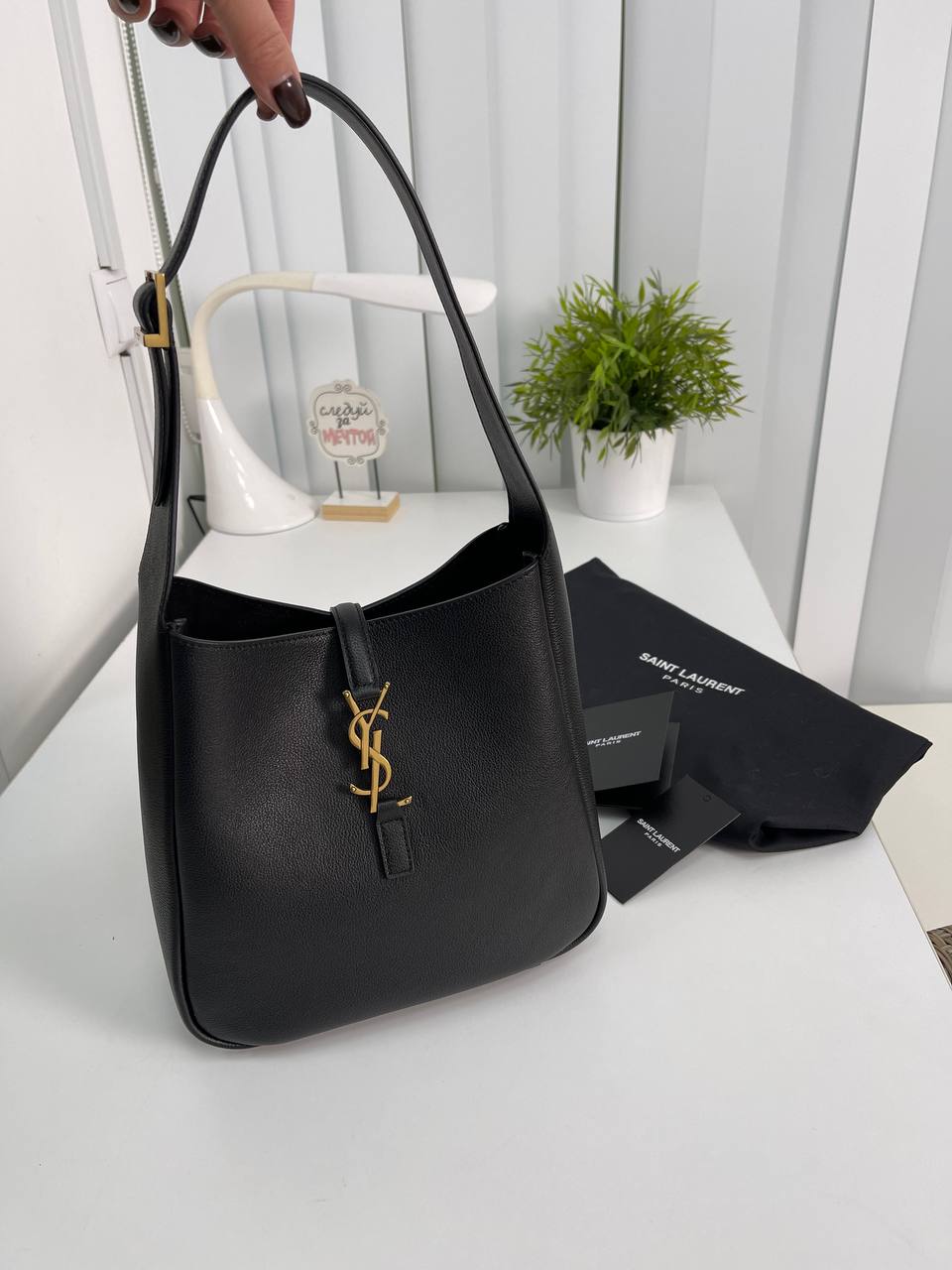 СУМКА-ХОБО CASSANDRE С МЕТАЛЛИЧЕСКОЙ ЗАСТЕЖКОЙ НА КРЮЧОК С ПЕРЕПЛЕТЕННЫМИ Yves Saint Laurent LUX-80833 представляет собой элегантную сумку-хобо в классическом стиле. Она выполнена в черном цвете, имеет гладкую текстуру и украшена знаковым металлическим логотипом. Эта сумка идеально подходит для повседневного использования, дополняя любой образ.