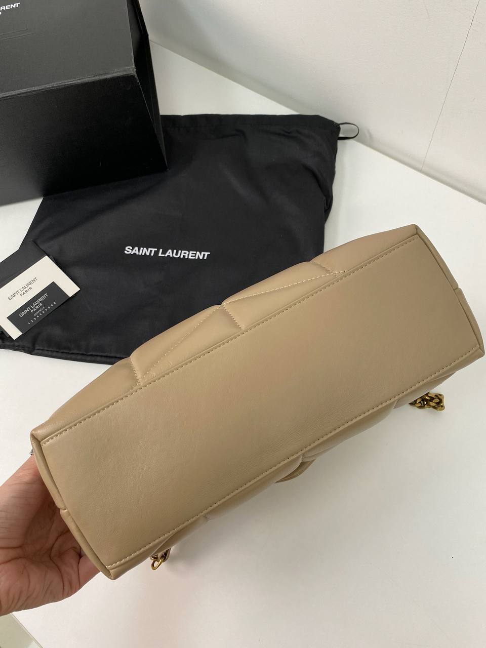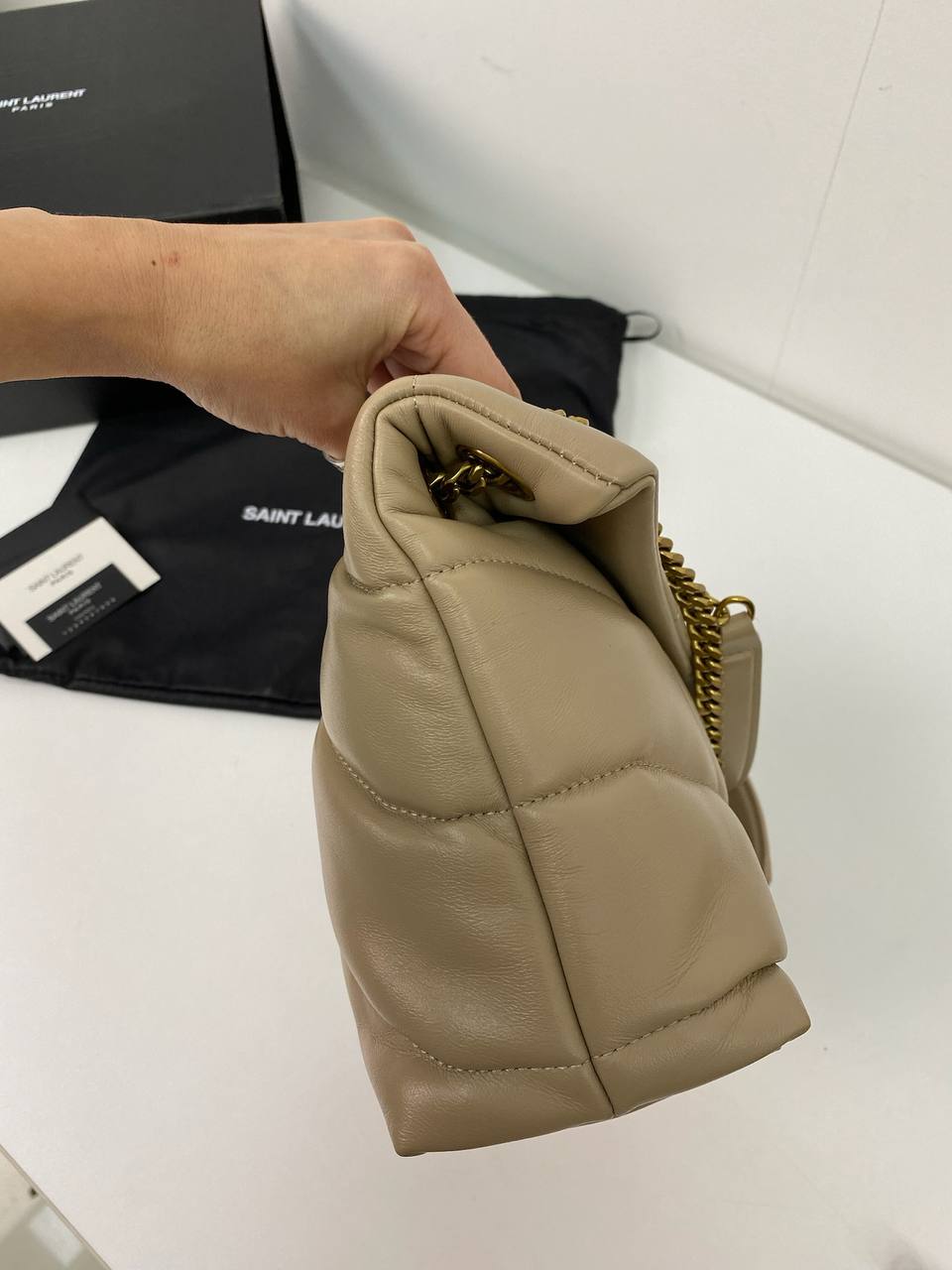 Женская сумка Yves Saint Laurent LUX-82564 — это стильный аксессуар, который подчеркнет ваш безупречный вкус. Сумка выполнена в нежном бежевом цвете с золотистой фурнитурой, имеет стеганую текстуру и узнаваемый логотип бренда. Она станет отличным дополнением к повседневному или вечернему образу.