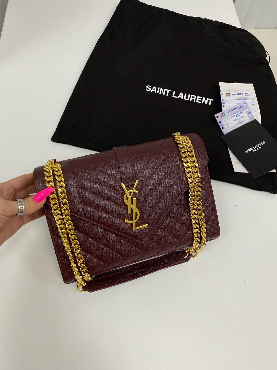 Сумка женская Yves Saint Laurent LUX-83891 выполнена в классическом стиле. Она бордового цвета, с золотистой фурнитурой и характерным стеганым узором. Предназначена для повседневного использования и выхода в свет.