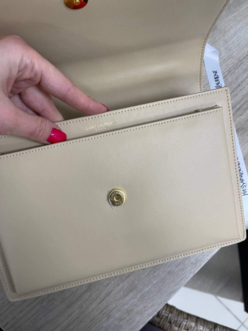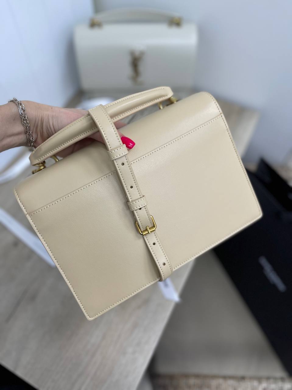 Сумка женская Yves Saint Laurent LUX-86092 выполнена в элегантном стиле. Нежный бежевый цвет и лаконичный дизайн делают ее идеальным аксессуаром для создания утонченных образов. Золотистая фурнитура добавляет роскоши и подчеркивает статус владелицы.