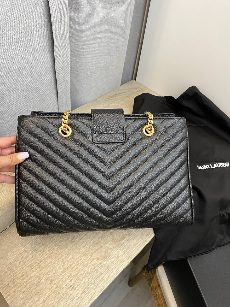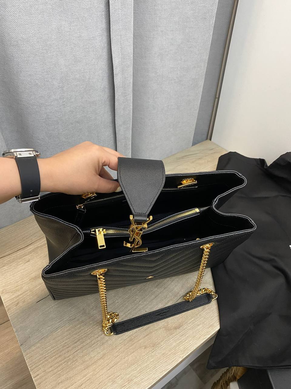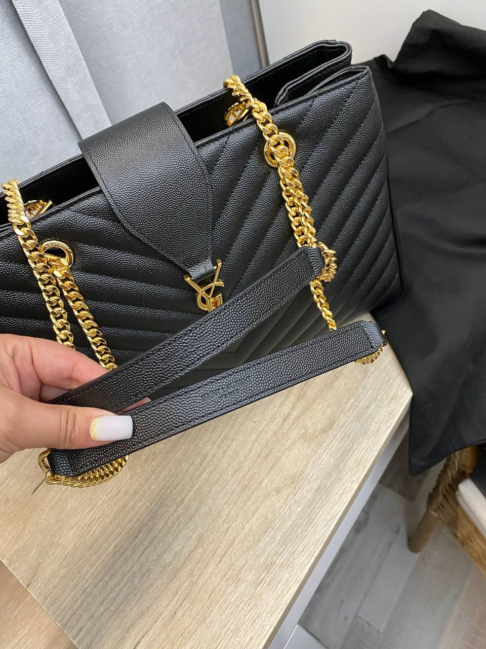 Женская сумка Yves Saint Laurent LUX-95802 — воплощение элегантности и стиля. Эта сумка выполнена в классическом черном цвете, с изысканной текстурой и золотистой фурнитурой. Идеально подходит для повседневного использования и для особых случаев.