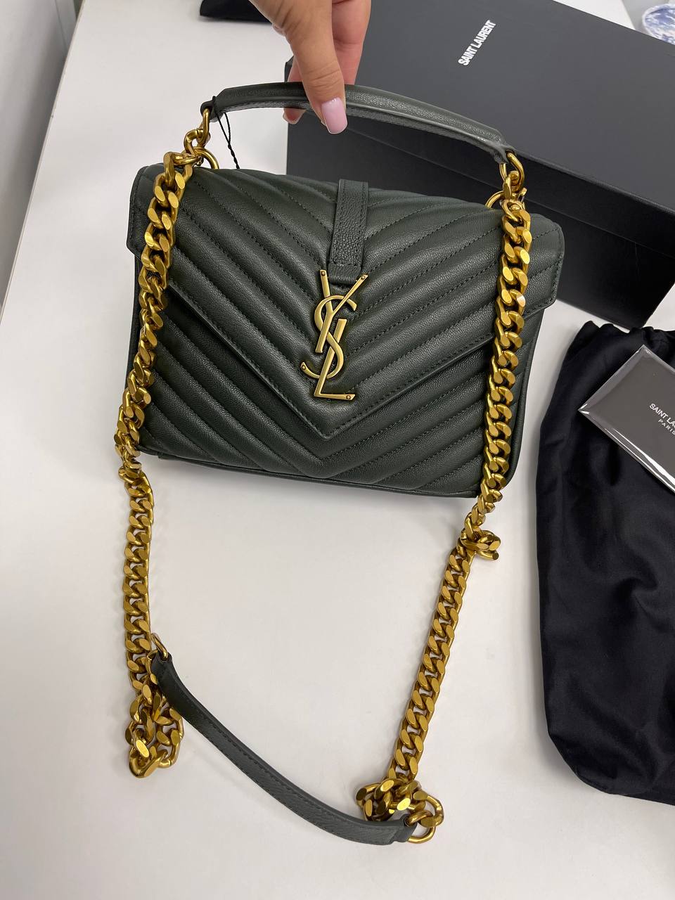 Сумка женская Yves Saint Laurent LUX-93571 — это воплощение элегантности и роскоши. Модель выполнена в классическом дизайне, с фирменной застежкой и золотистой фурнитурой, что делает ее идеальным аксессуаром для создания изысканных образов. Темно-зеленый цвет придает сумке благородный вид и позволяет легко сочетать ее с различными нарядами.