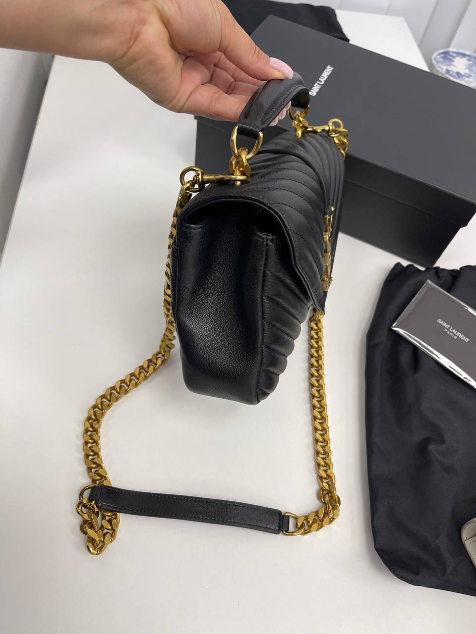Женская сумка Yves Saint Laurent LUX-93572 - это элегантная модель, выполненная в классическом стиле. Черная стеганая сумка дополнена золотистыми деталями, что придает ей роскошный вид. Этот аксессуар станет отличным дополнением к любому образу.