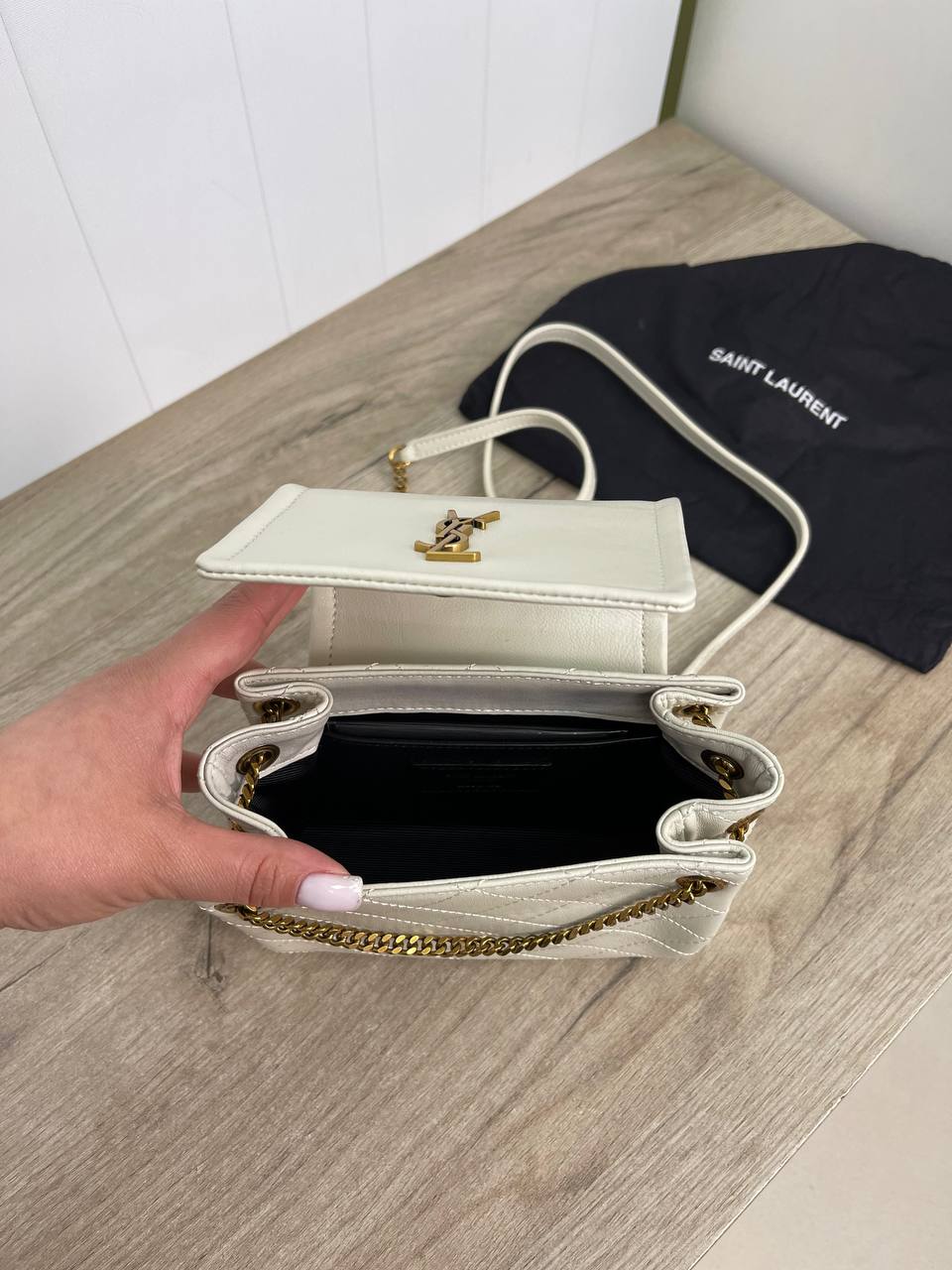 Сумка женская Yves Saint Laurent LUX-89425 - это стильный аксессуар, который подчеркнет ваш образ. Сумка выполнена в нежном белом цвете с золотистой фурнитурой, имеет стеганый узор. Ее элегантный дизайн делает ее идеальным выбором для различных мероприятий.