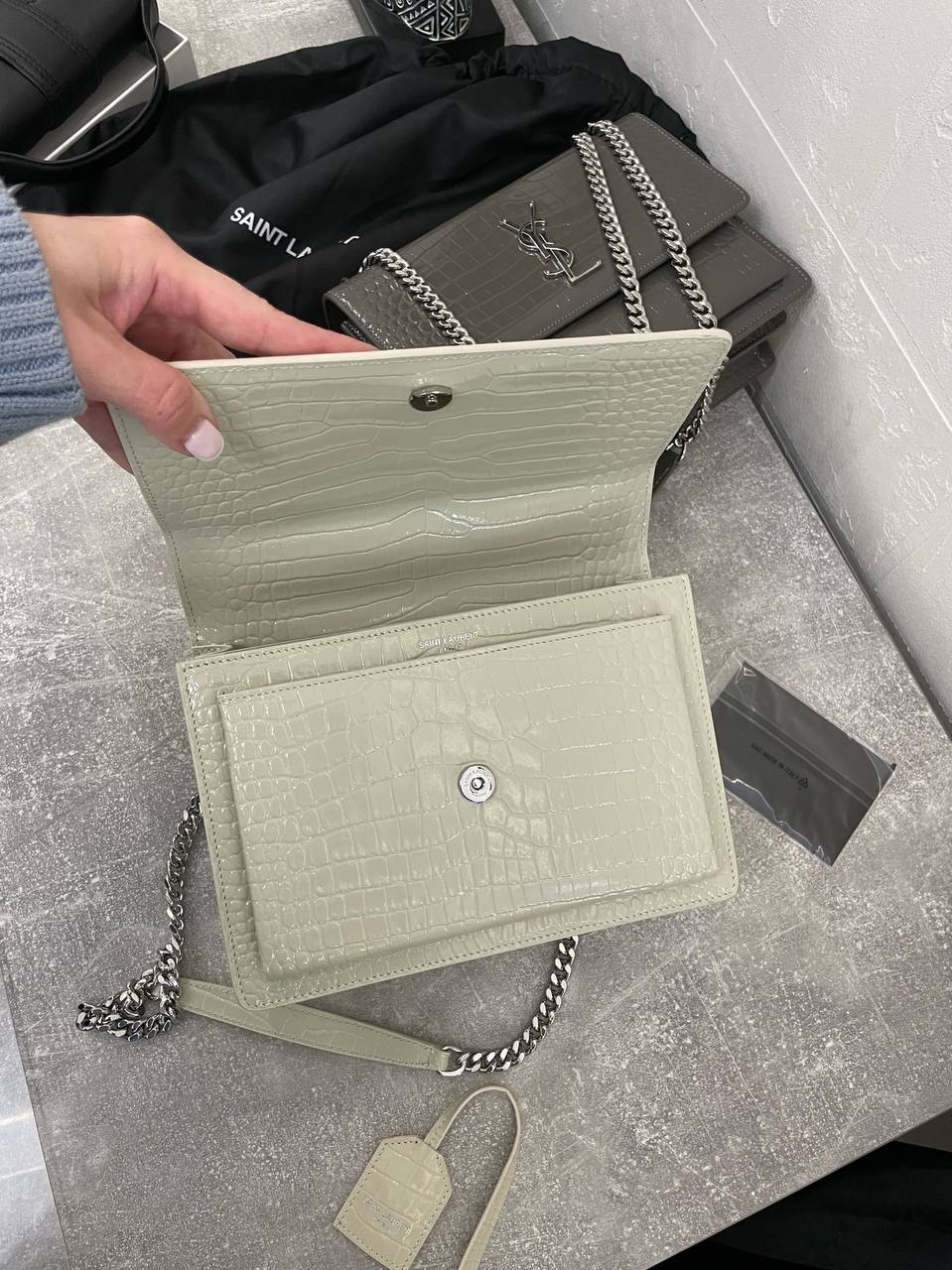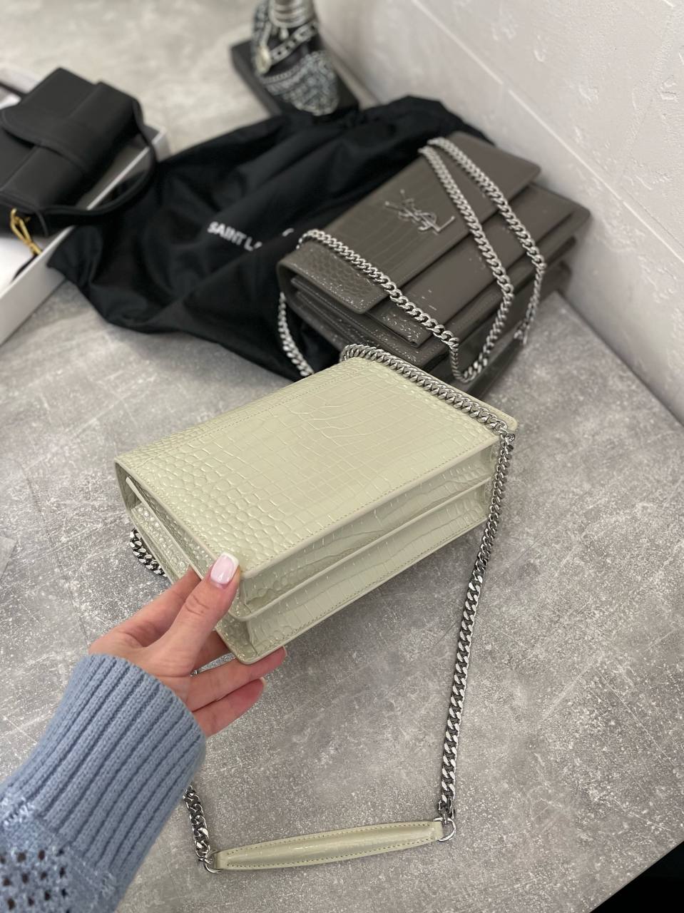 Сумка женская Yves Saint Laurent LUX-102138 - это элегантная сумка через плечо, выполненная в классическом стиле. Она выполнена в кремовом цвете, с текстурой под крокодиловую кожу, что придает ей изысканный вид. Сумка идеально подойдет для создания как повседневных, так и вечерних образов.