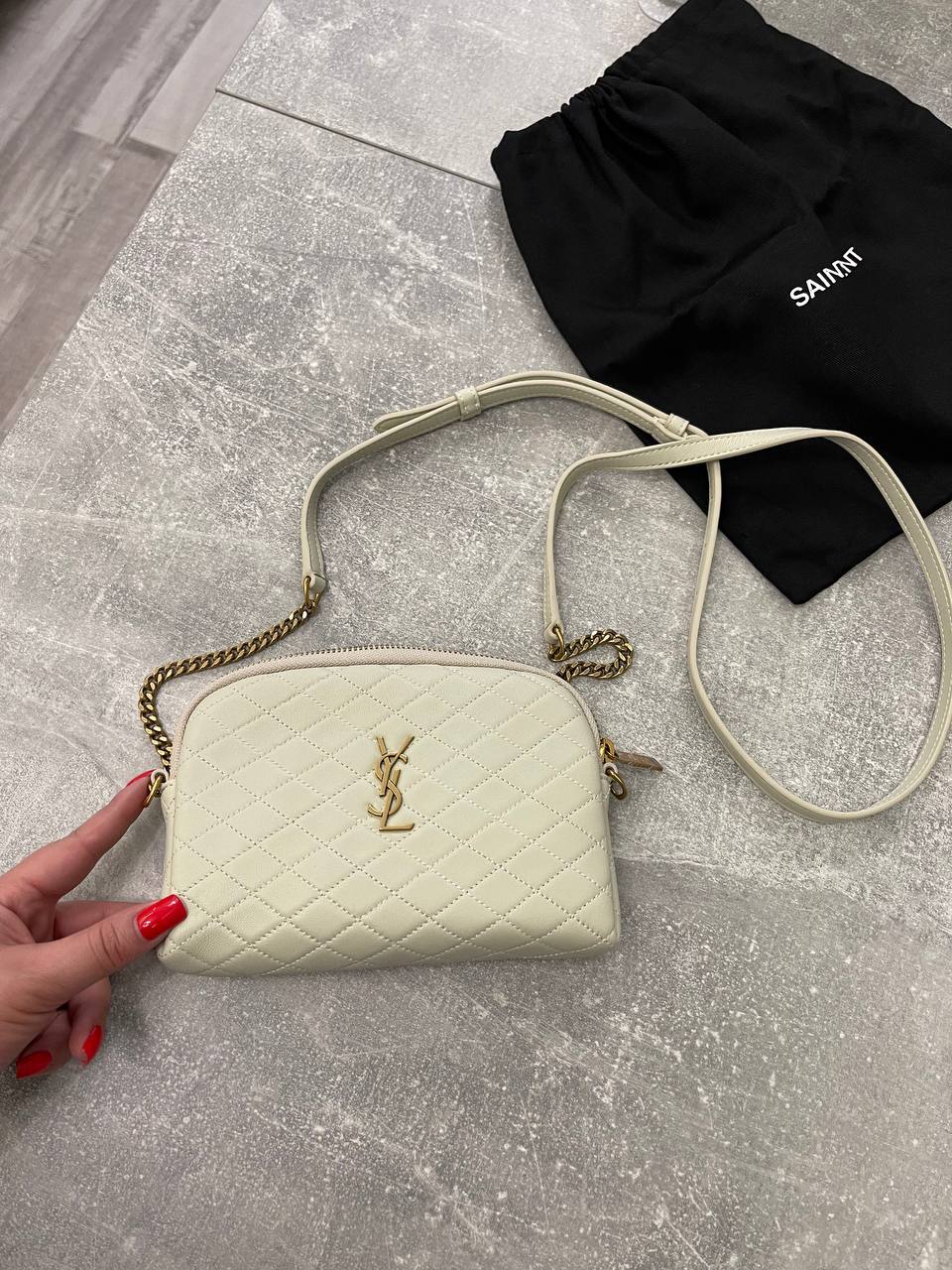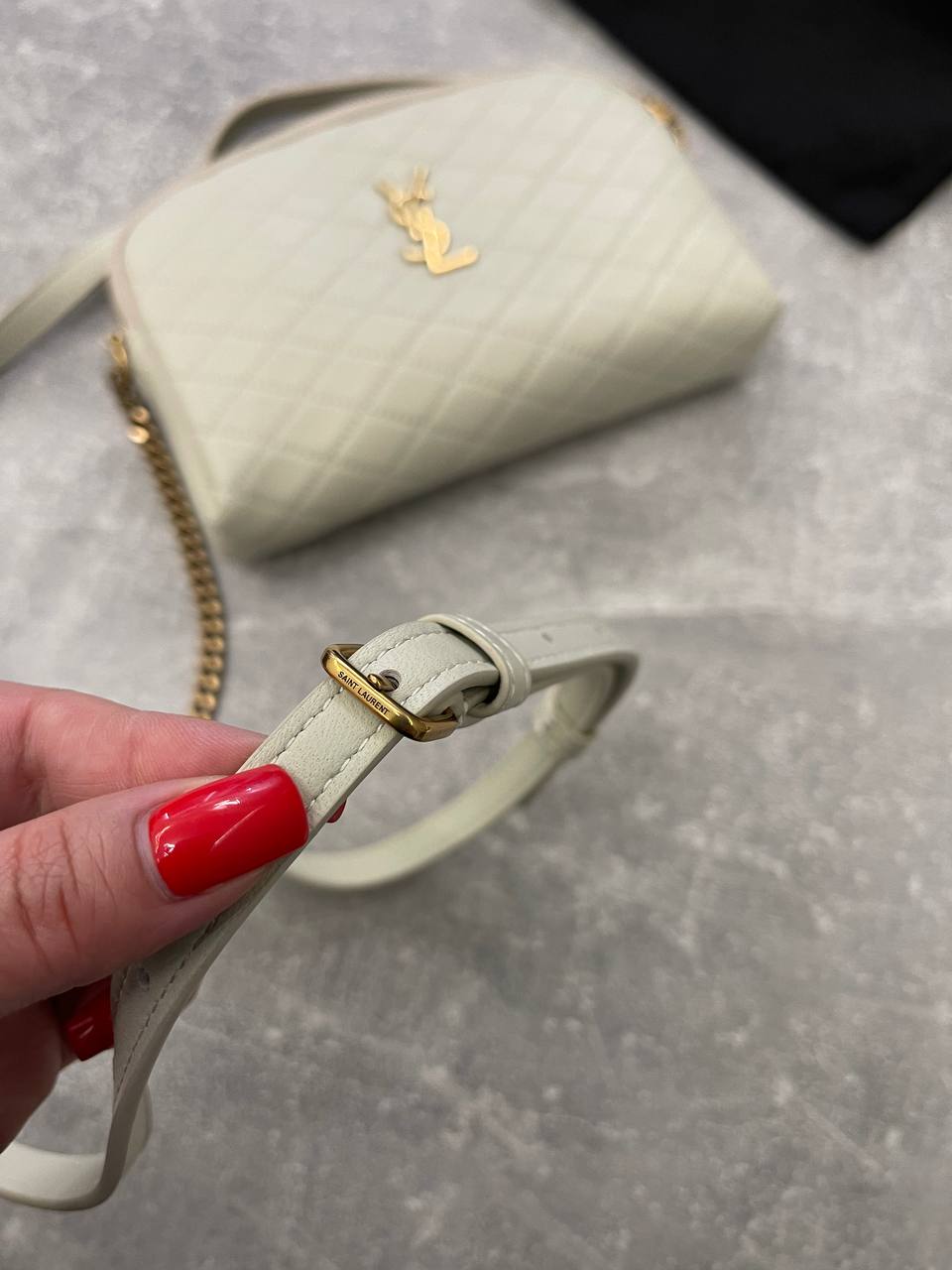 Сумка женская Yves Saint Laurent LUX-102881, выполнена в элегантном стиле. Небольшая сумка кремового цвета с золотой фурнитурой и цепочкой. Отлично подойдёт для повседневного использования, а также для вечерних выходов.