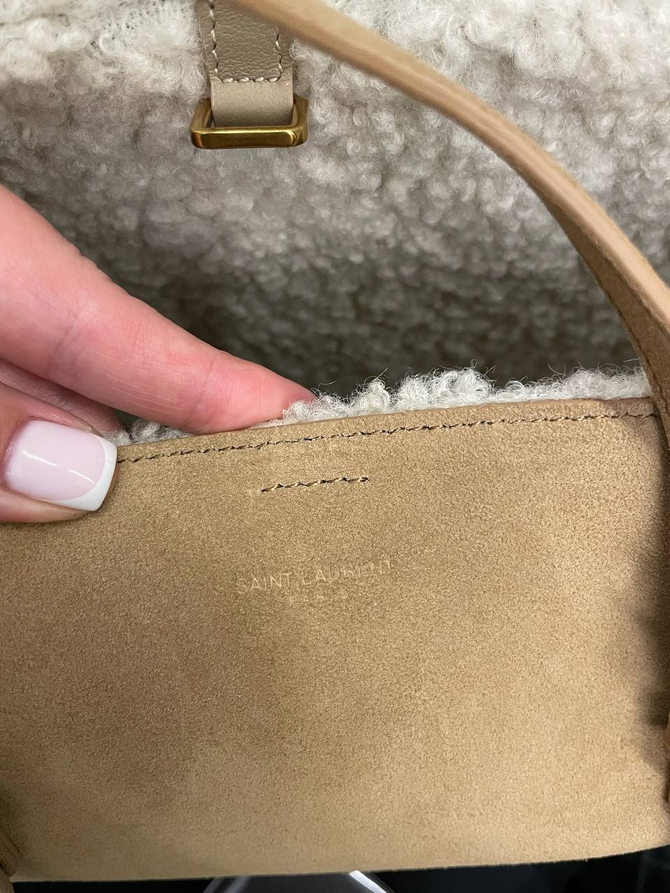 Женская сумка Yves Saint Laurent LUX-112980, представленная на изображении, выполнена в повседневном стиле, сочетает в себе элегантность и комфорт. Она имеет бежевый цвет, что делает её универсальной для различных образов. Текстура сумки позволяет сочетать ее с разными материалами в одежде, делая её идеальным аксессуаром для повседневной носки.