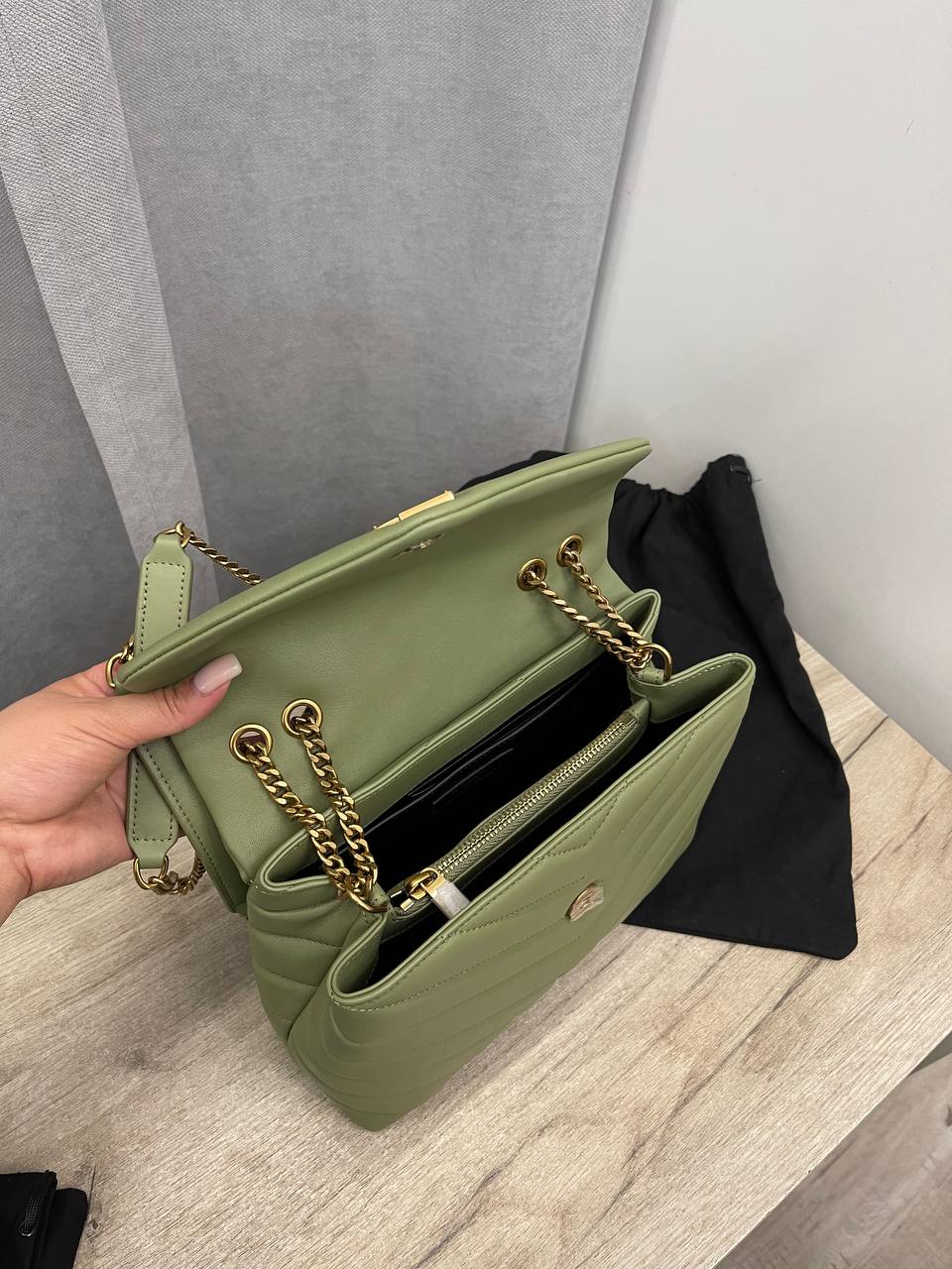 Сумка женская Yves Saint Laurent LUX-107390 – это воплощение элегантности и современного стиля. Данная модель выполнена в нежном оливковом цвете с мягкой текстурой. Идеальный выбор для тех, кто ценит изысканность и функциональность.