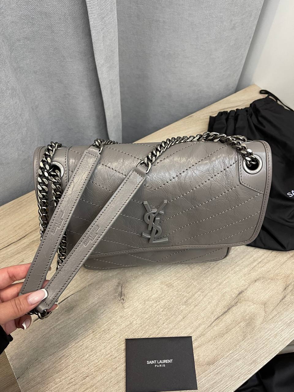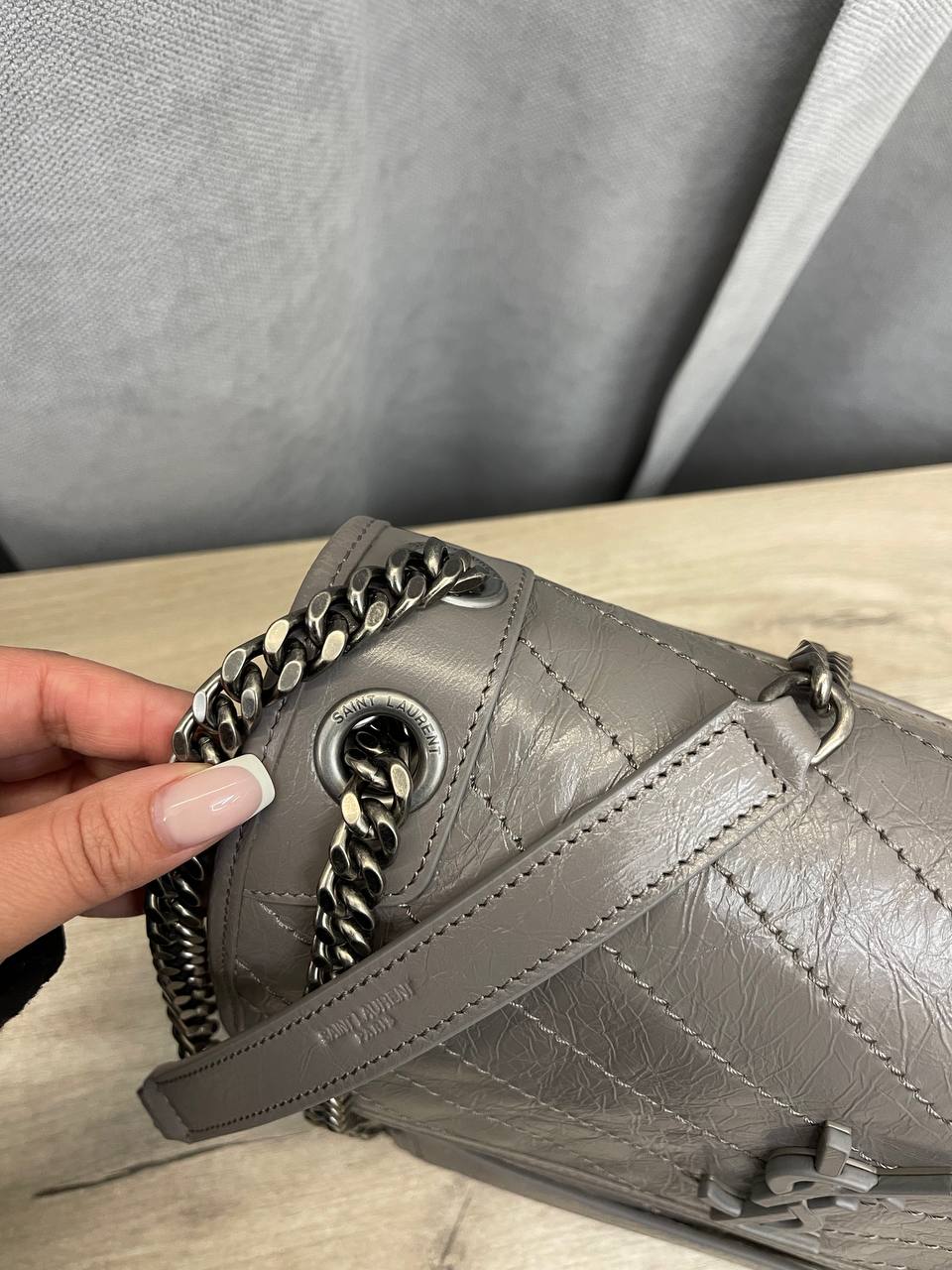 Сумка женская 28 см Yves Saint Laurent LUX-102146 выполнена в классическом стиле. Серый цвет и стеганая текстура придают элегантность. Эта сумка идеально подходит для повседневной носки или особых случаев, подчеркивая ваш изысканный вкус.