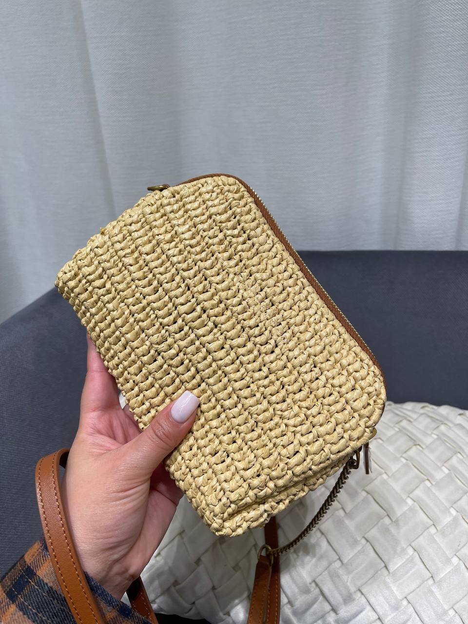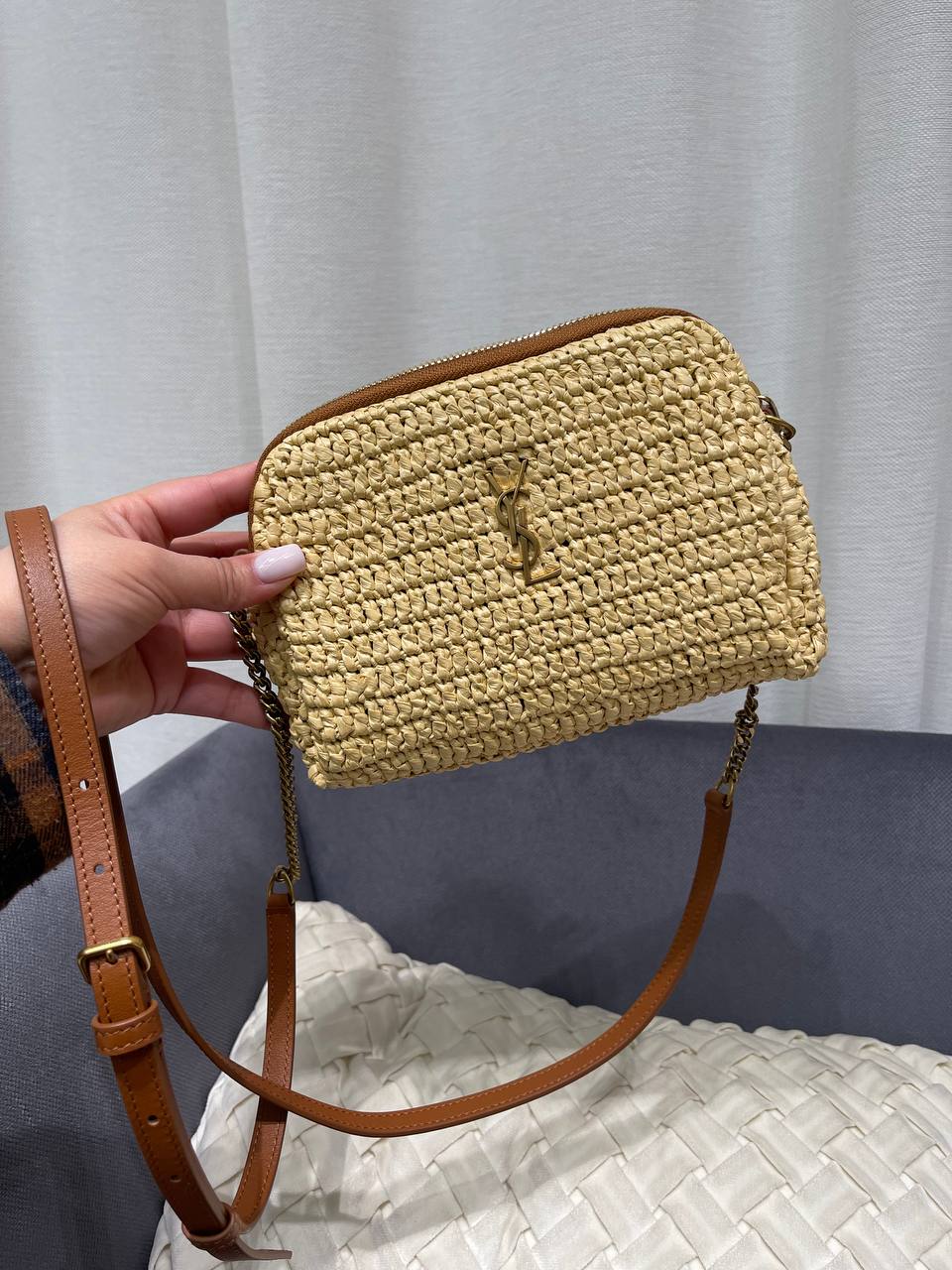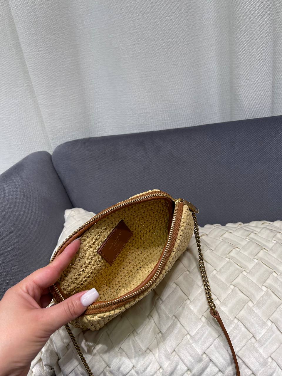 Представлена женская сумка Yves Saint Laurent LUX-119289. Сумка выполнена в плетеном стиле, создавая летнее настроение. Светлый оттенок хорошо сочетается с контрастными деталями, обеспечивая свежий и стильный образ. Идеально подходит для повседневного использования.