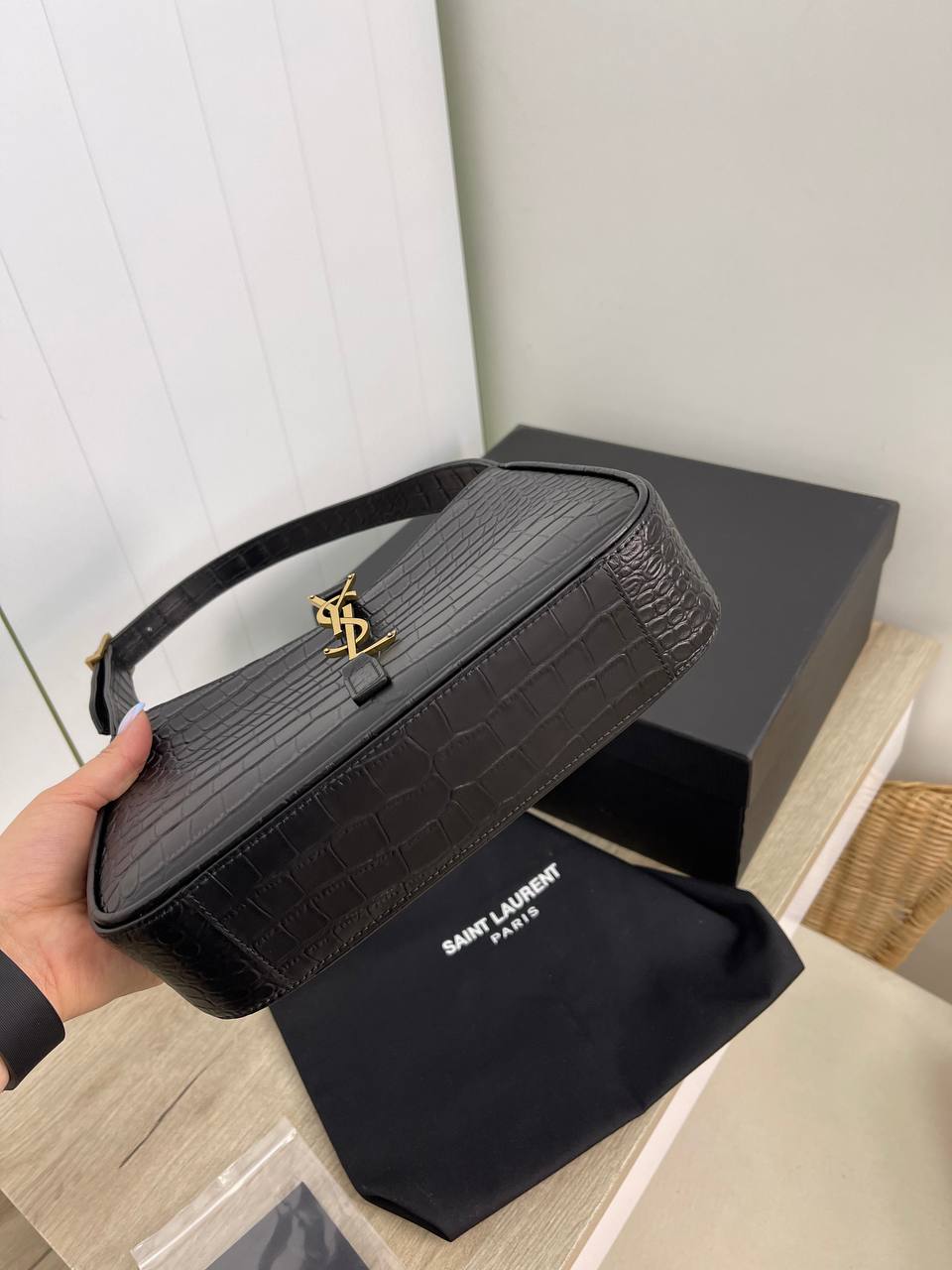 Сумка женская Yves Saint Laurent LUX-88144 представляет собой изысканный аксессуар в стиле casual. Сумка выполнена в черном цвете, имеет текстуру под кожу крокодила и золотистую фурнитуру с логотипом бренда. Этот аксессуар станет идеальным дополнением к повседневному образу.