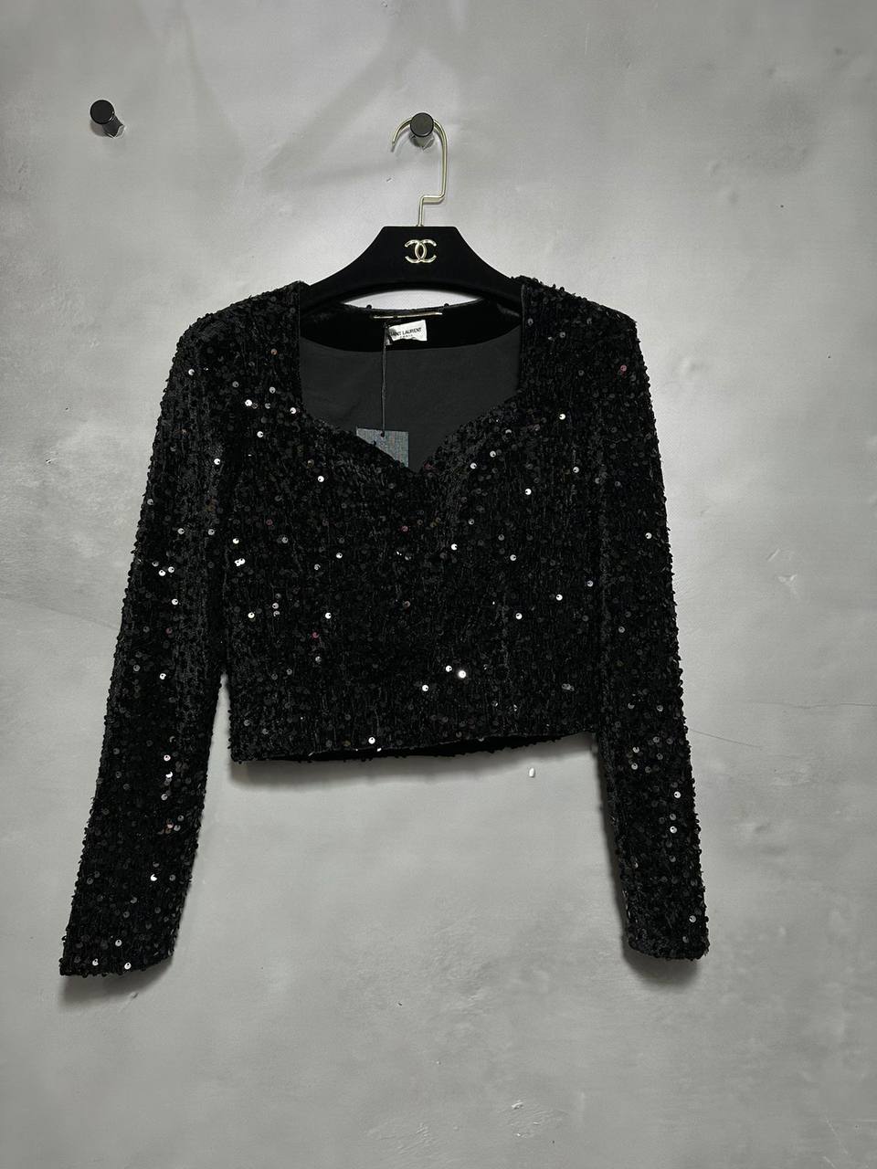 Yves Saint Laurent Top LUX-100707 - это стильный топ от известного бренда. Топ выполнен в черном цвете и украшен пайетками, создавая эффект блеска и роскоши. Идеально подойдет для создания вечерних образов.
