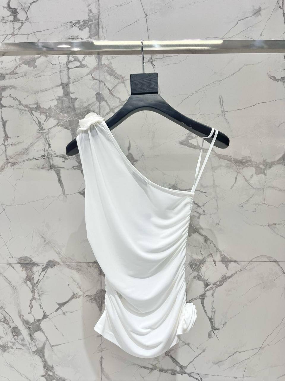 Yves Saint Laurent Топ LUX-119292 - это стильный и элегантный топ, который подчеркнет вашу индивидуальность. Топ выполнен в минималистичном дизайне, с асимметричным вырезом на одно плечо и драпировкой, которая добавляет изысканности. Белый цвет делает его универсальным вариантом для различных образов.