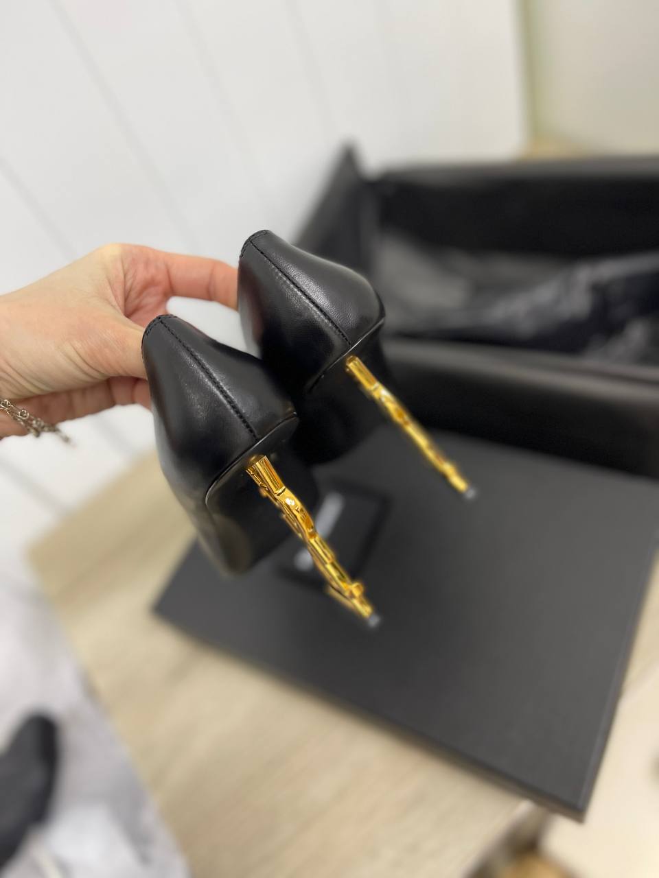 Туфли Yves Saint Laurent LUX-87533 — это элегантная модель черного цвета с изящным дизайном, который подойдет для вечерних выходов и торжественных мероприятий. Туфли имеют заостренный носок и необычный каблук с логотипом бренда. Модель выполнена в классическом стиле.