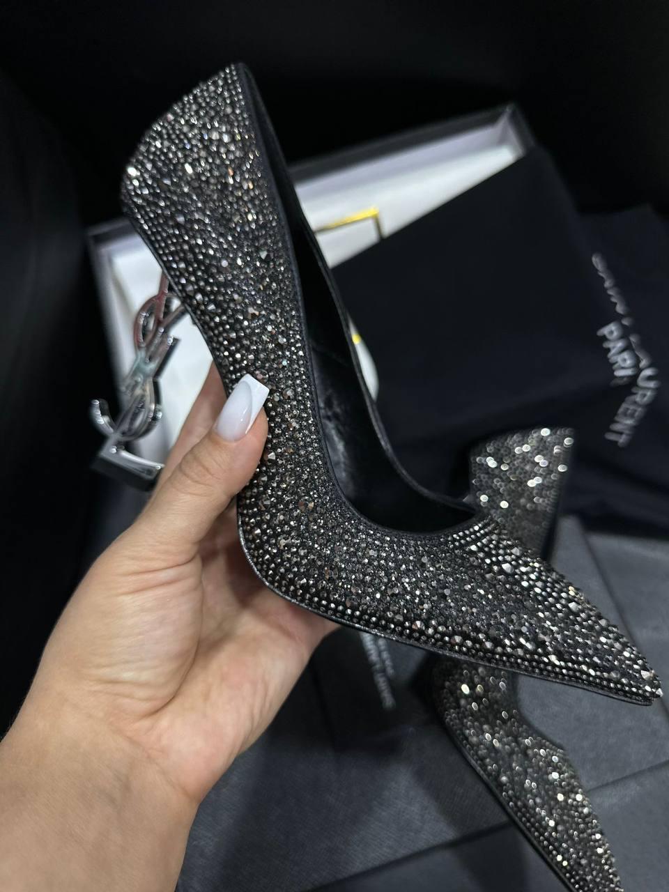 Туфли Yves Saint Laurent LUX-100805 — это роскошные туфли-лодочки, украшенные блестящими элементами. Дизайн подразумевает заостренный носок и элегантный каблук. Черный цвет и сияющая отделка придают туфлям изысканный вид, подходящий для особых случаев.