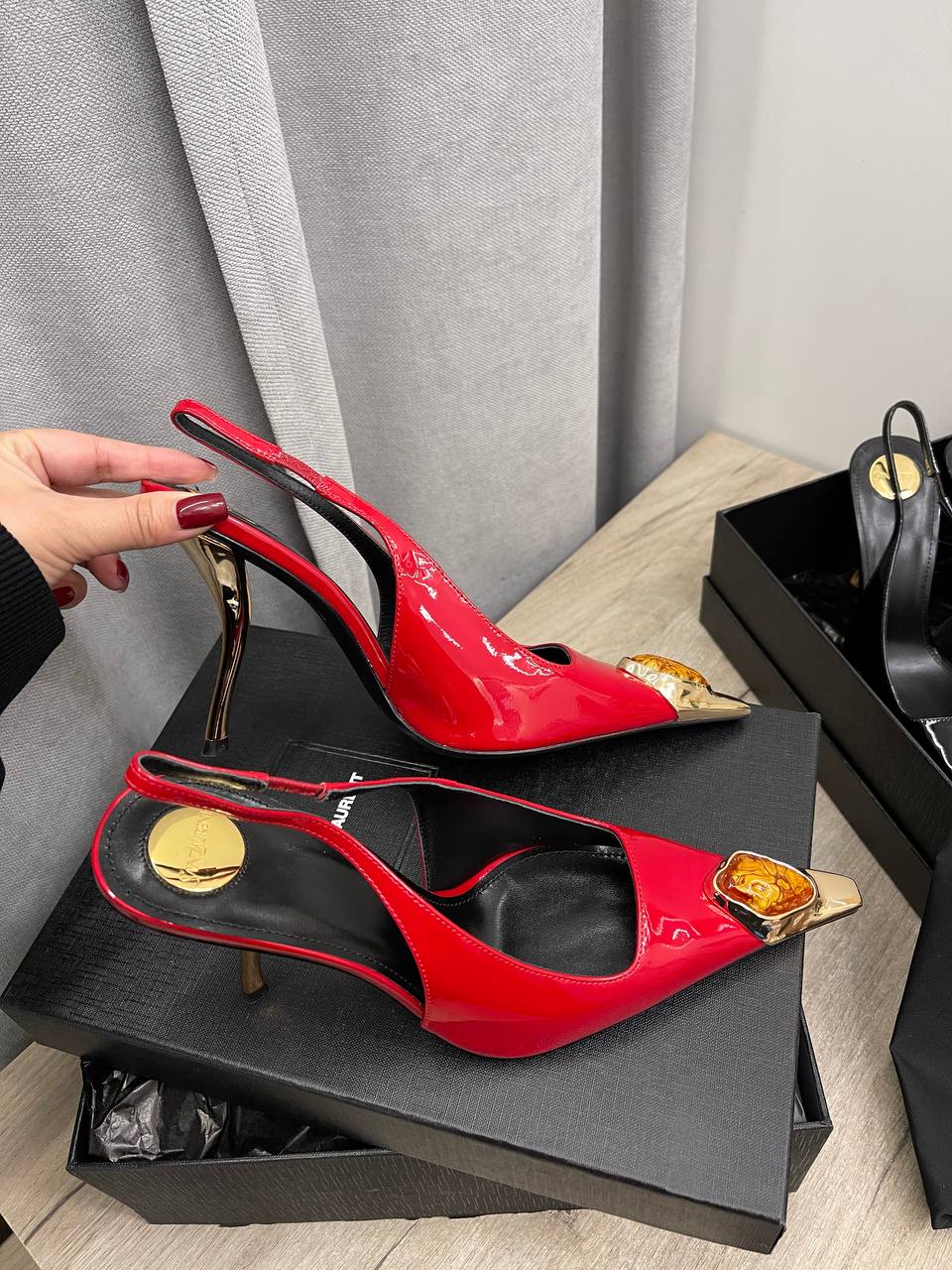 Туфли Yves Saint Laurent LUX-115210 - это элегантные туфли-лодочки с заостренным носком. Яркий глянцевый красный цвет и золотые детали создают роскошный образ. Эти туфли идеально подойдут для особых случаев и добавят изысканности любому наряду.