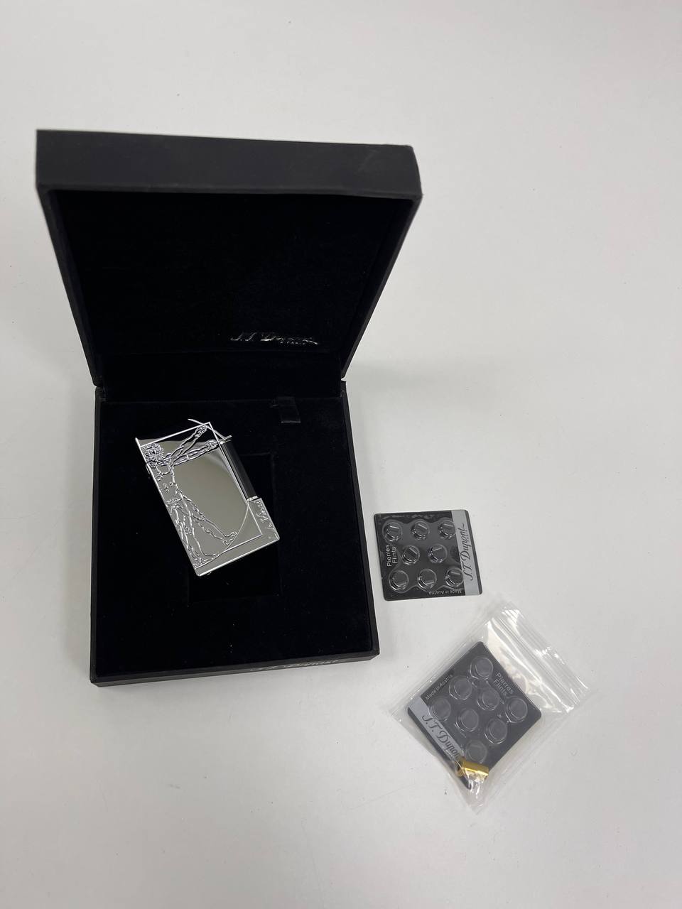 Зажигалка St.Dupont LUX-80650 — это стильный аксессуар для повседневного использования. Она выполнена в серебристом цвете с декоративным узором на корпусе. Зажигалка упакована в элегантную черную коробку, что делает её отличным подарком.