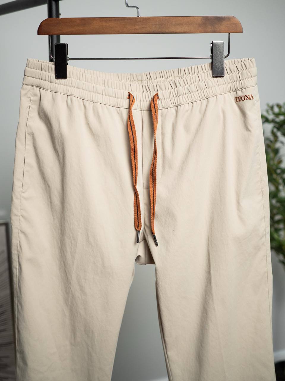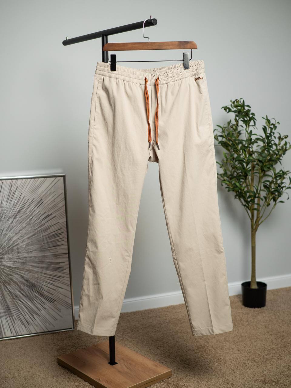 Брюки ZEGNA LUX-119536 — это стильные брюки в повседневном стиле, выполненные в бежевом цвете. Текстура ткани выглядит гладкой, с небольшим блеском. Идеальный вариант для создания как повседневных, так и более формальных образов.