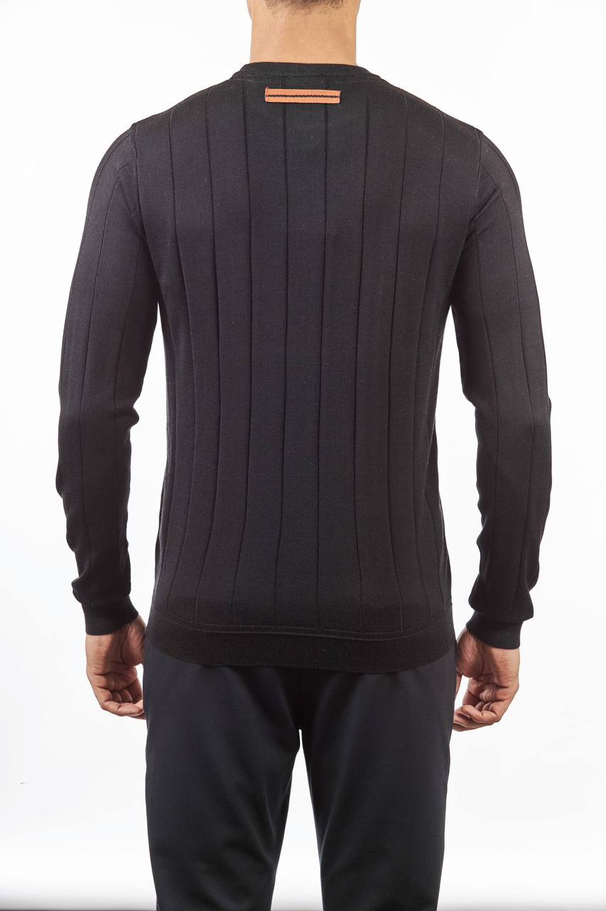 Джемпер ZEGNA, модель LUX-95547, представляет собой элегантный предмет гардероба. Данный джемпер выполнен в классическом стиле, чёрного цвета с текстурным дизайном в виде вертикальных полос. Идеален для создания как повседневных, так и более формальных образов.