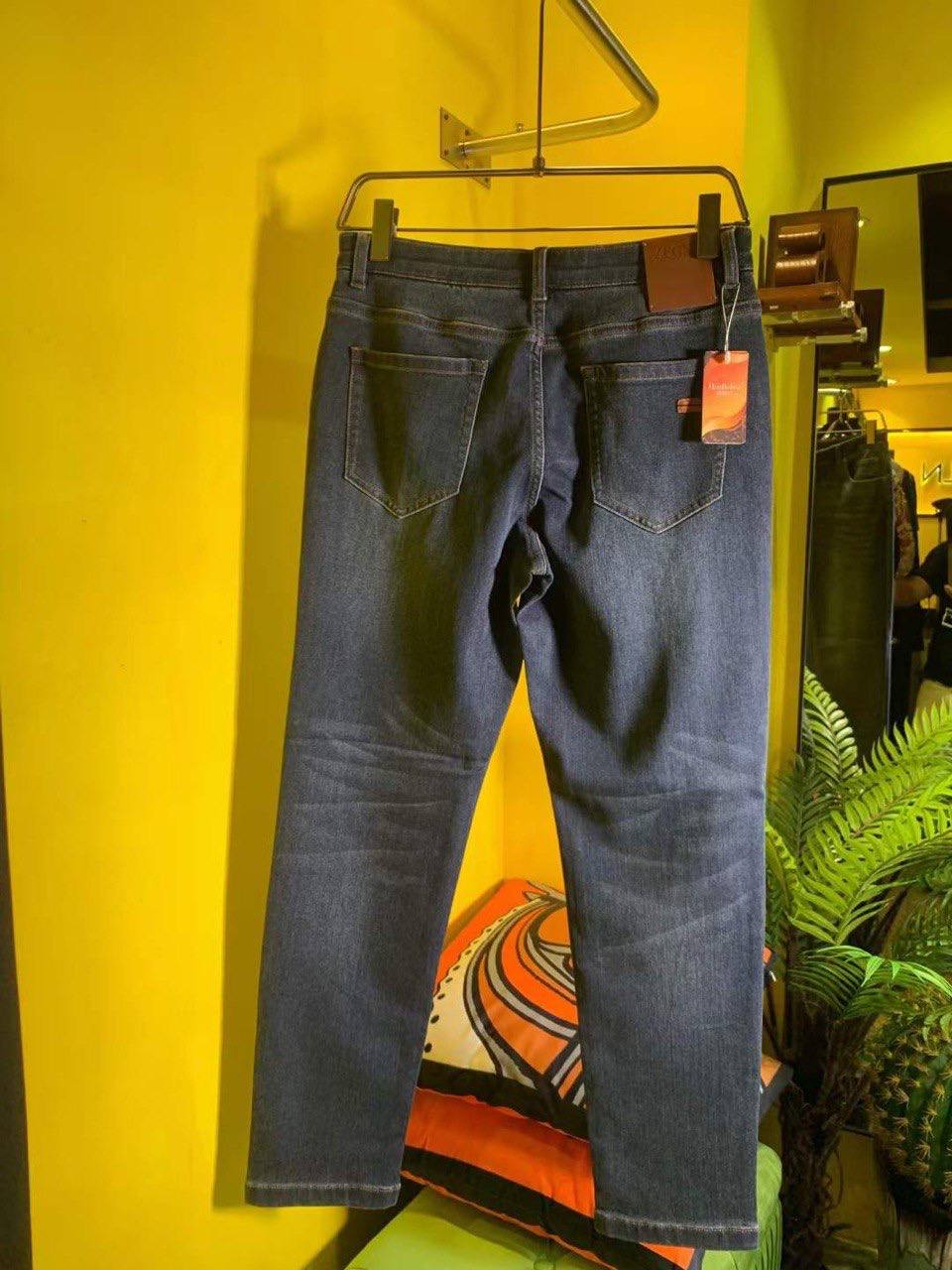 Джинсы ZEGNA LUX-94991 — это классическая модель джинсов, выполненная в темно-синем цвете. Они имеют прямой крой, который обеспечивает комфортную посадку и подходит для различных типов фигур. Текстура ткани видна на фото, что добавляет джинсам элегантности.