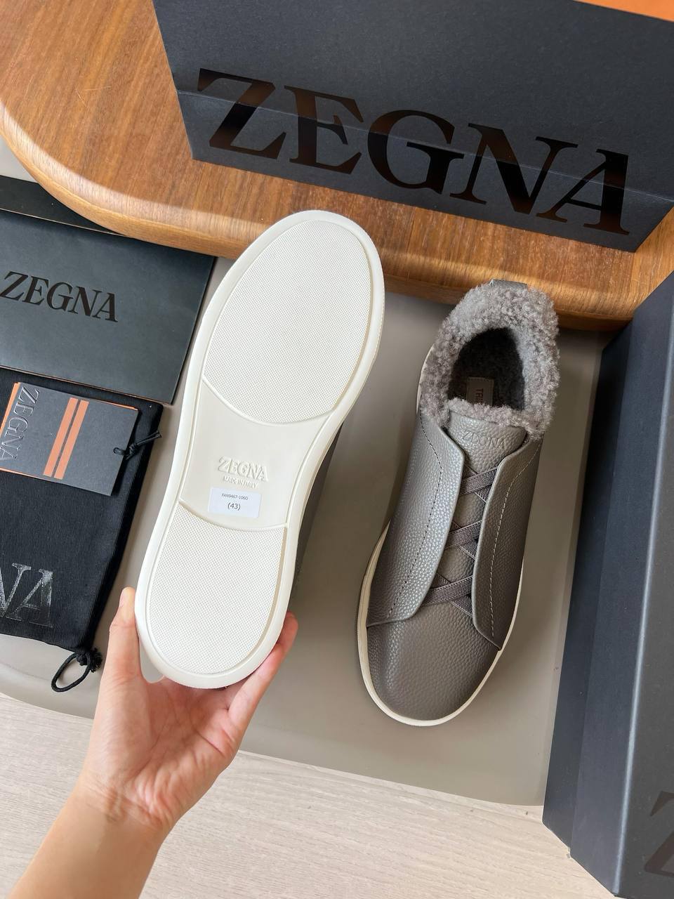 Кеды ZEGNA LUX-110732 — это стильные кеды в современном дизайне. Основной цвет модели — серый, с меховой отделкой внутри. Предназначены для повседневной носки, обеспечивая комфорт и элегантность.