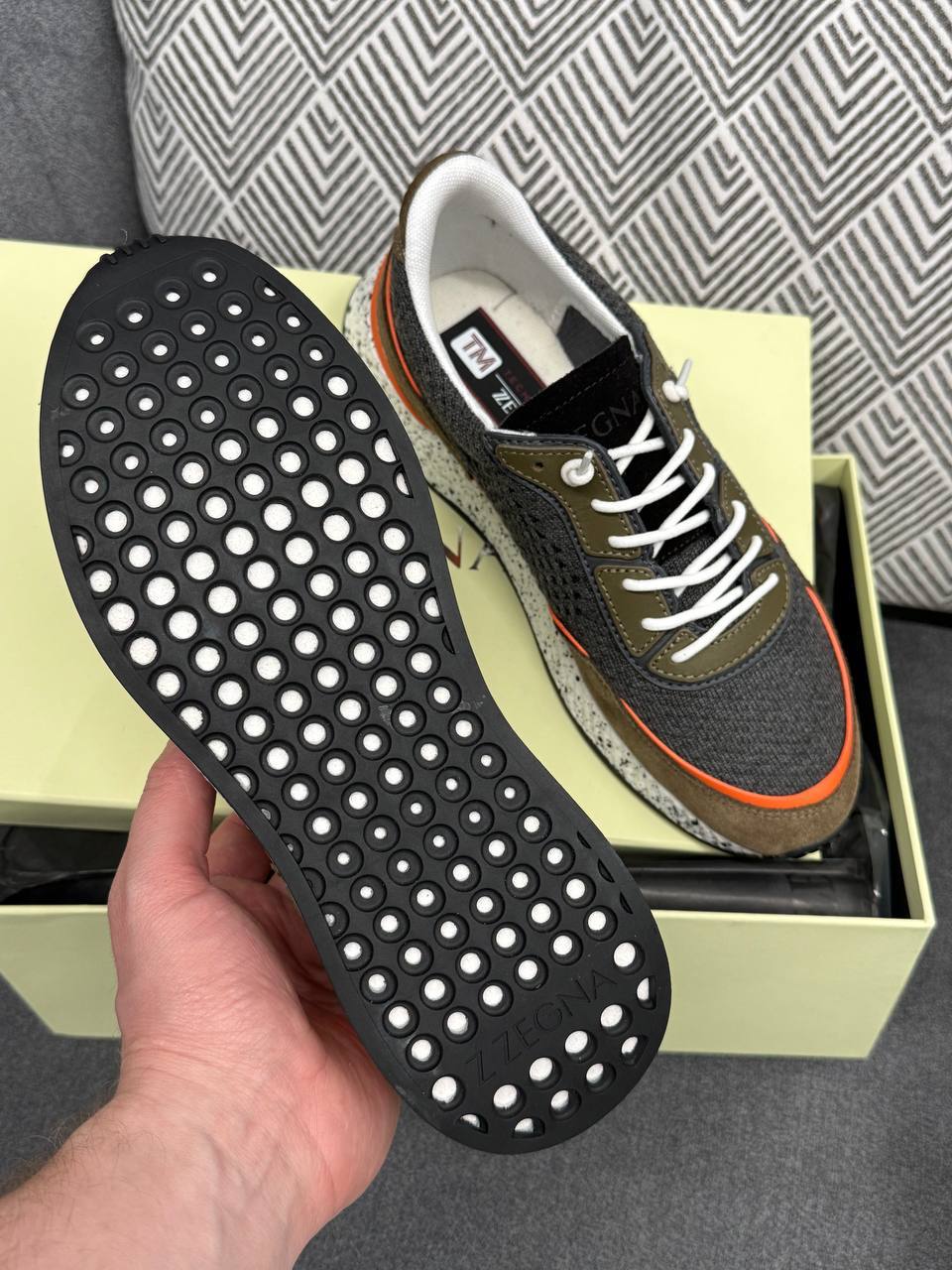 Кроссовки ZEGNA LUX-119527 – стильная модель, сочетающая в себе современные тенденции и комфорт. Кроссовки выполнены в сочетании серых, оранжевых и оливковых оттенков, что делает их актуальными для повседневной носки. Идеальный выбор для тех, кто ценит удобство и стиль.