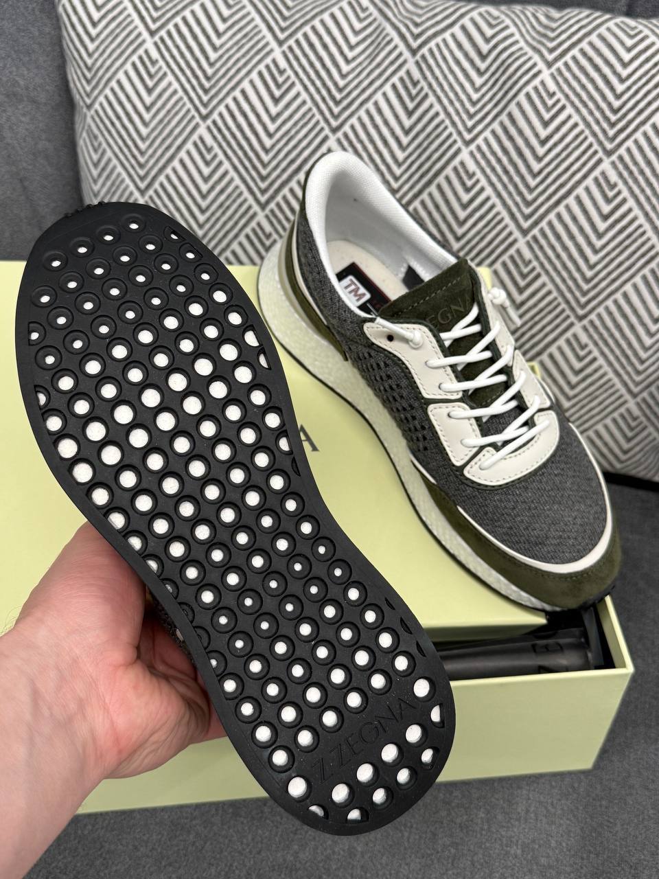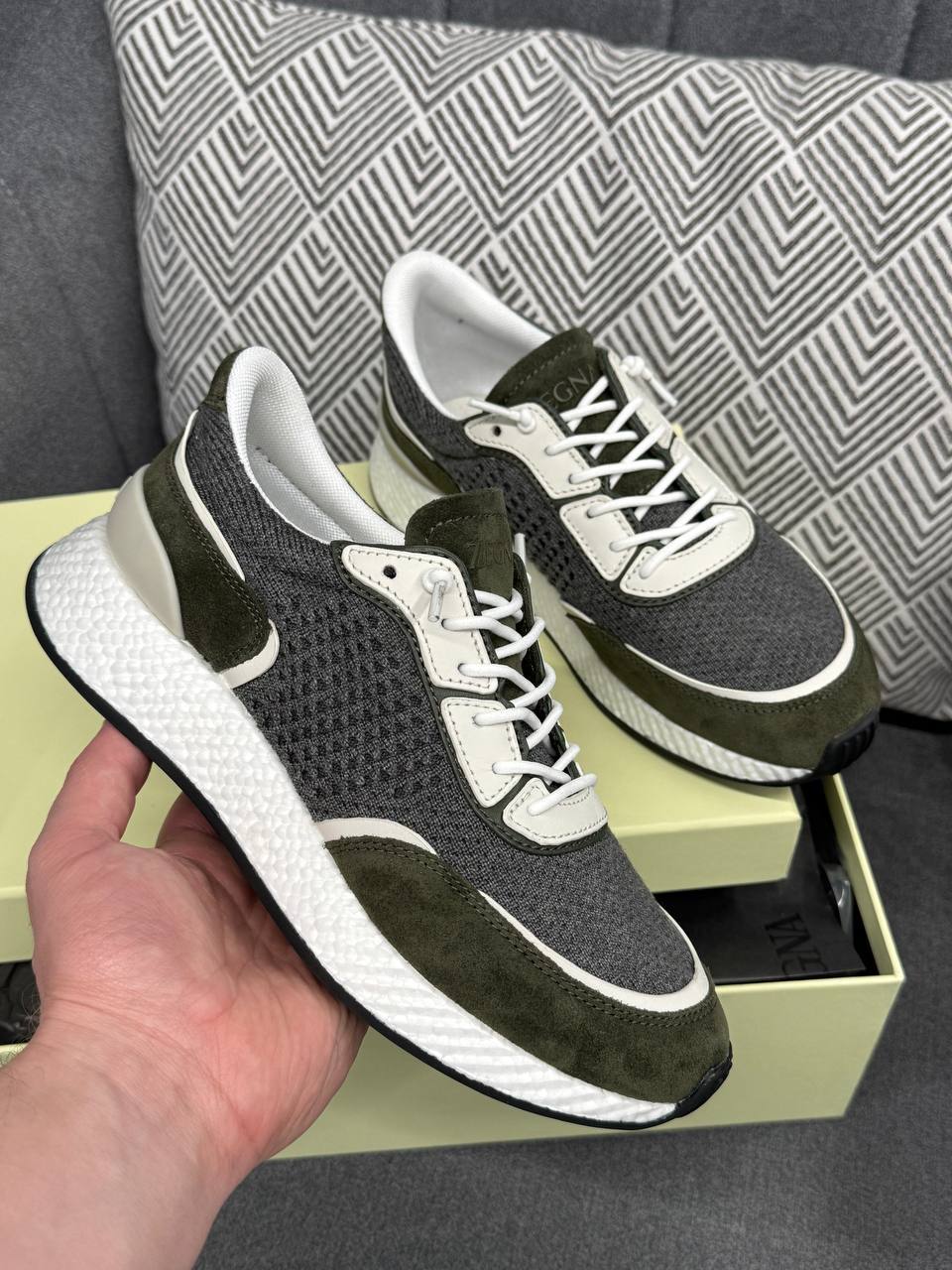 Кроссовки ZEGNA LUX-119530 — это стильные кроссовки в спортивном стиле. Основные цвета изделия: серый, белый и хаки. Дизайн кроссовок предполагает их использование для повседневной носки.