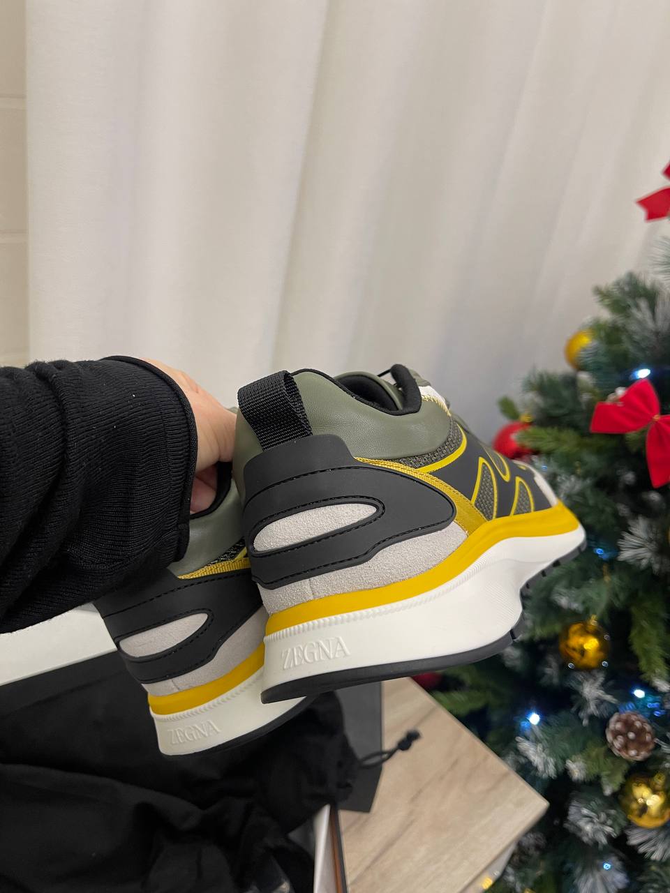 Кроссовки ZEGNA LUX-86372 представляют собой стильную модель в спортивном стиле. Преобладающие цвета: хаки, черный, желтый и серый, создающие динамичный образ. Кроссовки предназначены для повседневной носки, обеспечивая комфорт и узнаваемый дизайн.