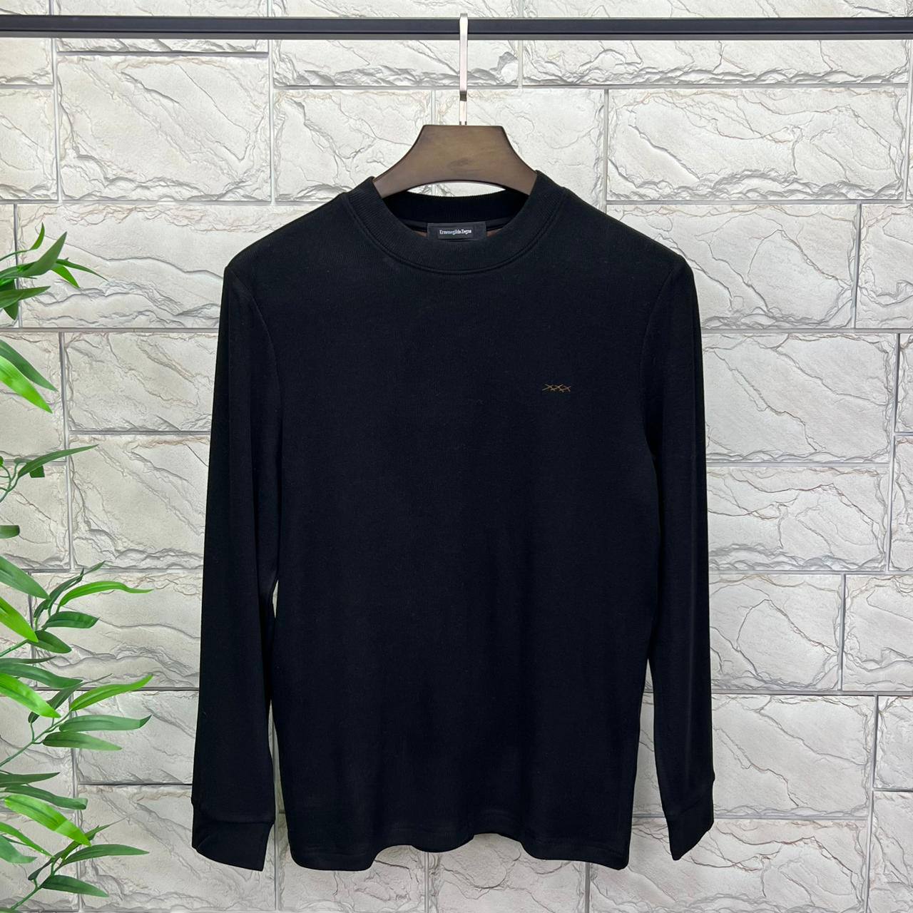Лонгслив ZEGNA LUX-81694 представляет собой классический элемент гардероба. Выполнен в черном цвете, имеет минималистичный дизайн с небольшим логотипом на груди. Этот лонгслив подойдет для создания стильных повседневных образов.