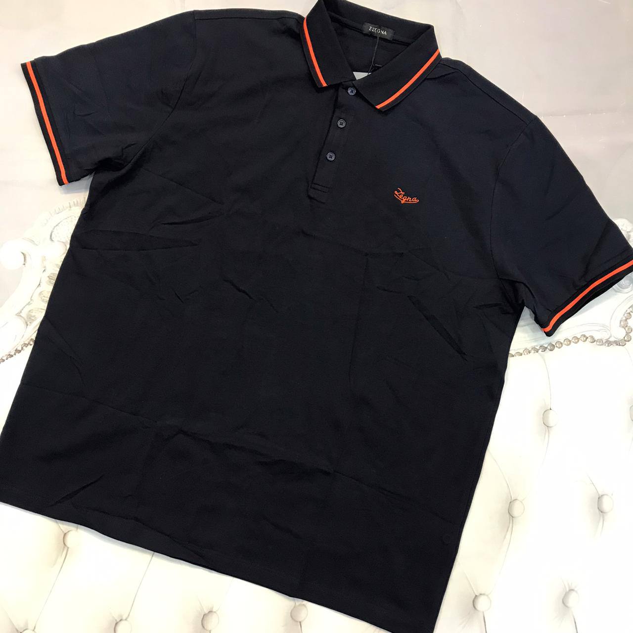 Поло ZEGNA LUX-65721 — это элегантная мужская футболка поло, выполненная в классическом черном цвете. Она отличается лаконичным дизайном с контрастной оранжевой отделкой воротника и манжет, что придает ей изысканный вид. Вышитый логотип бренда на груди подчеркивает премиальное происхождение изделия. Эта модель идеально подходит для создания стильных повседневных и более формальных образов.
