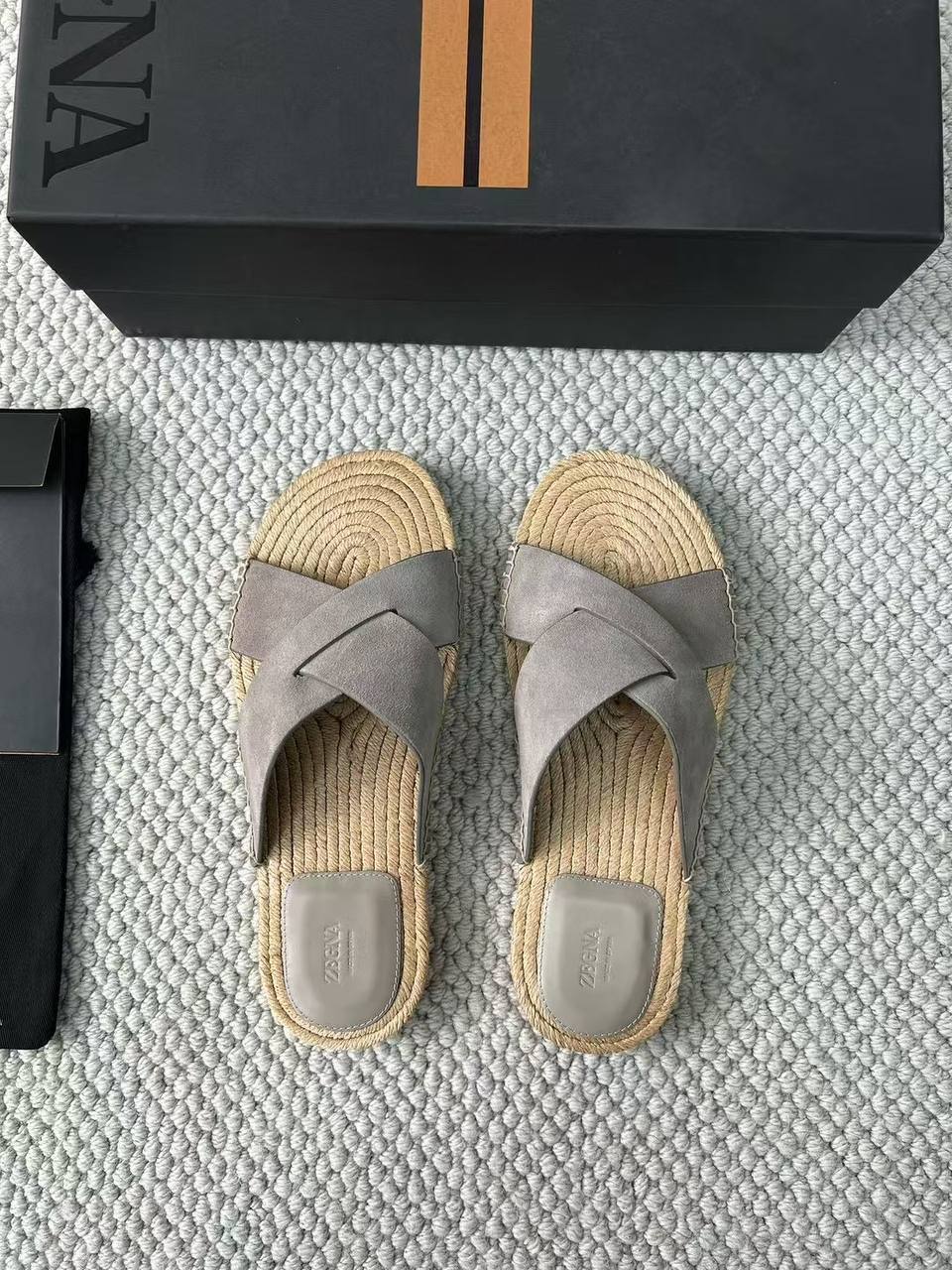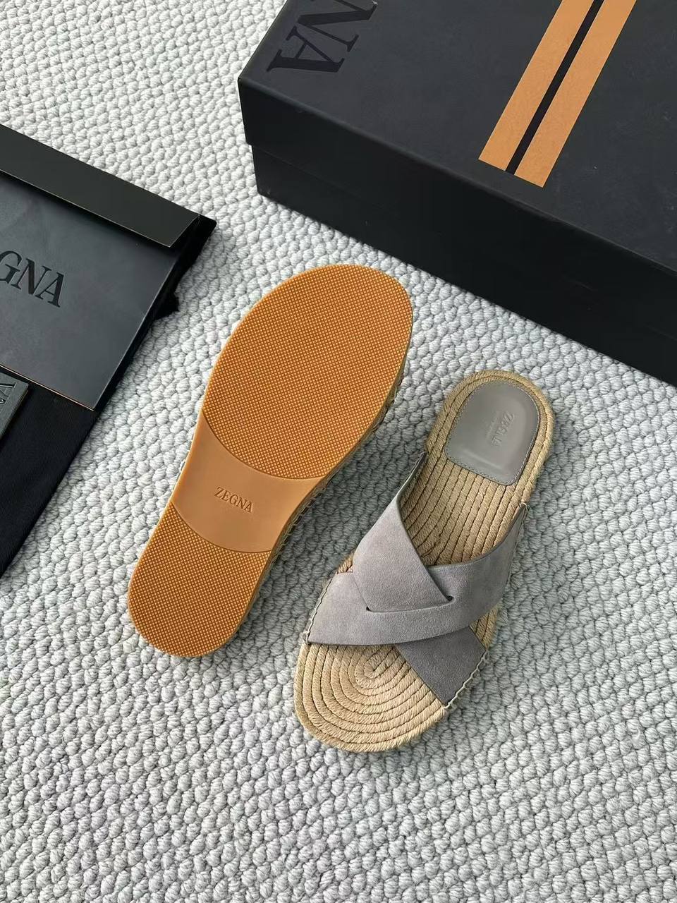 Шлепанцы ZEGNA LUX-118334 — это стильная и комфортная обувь, подходящая для летнего сезона. Серые шлепанцы с перекрещенными ремешками и плетеной подошвой сочетают в себе современный дизайн и практичность. Идеальный выбор для расслабленного образа в жаркую погоду.