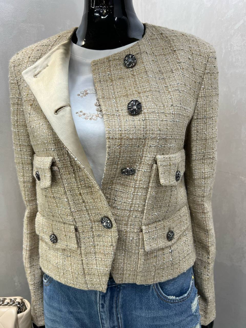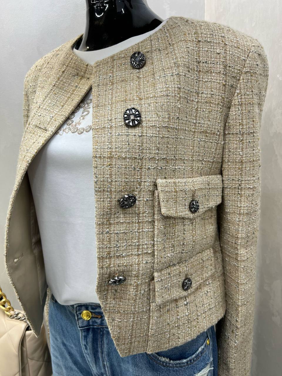 Жакет LUX-117617 - это элегантный предмет гардероба, выполненный в классическом стиле. Светлый цвет и текстура ткани создают изысканный образ, подчеркивающий женственность. Жакет идеально подойдет для создания стильных образов на каждый день и для особых случаев.