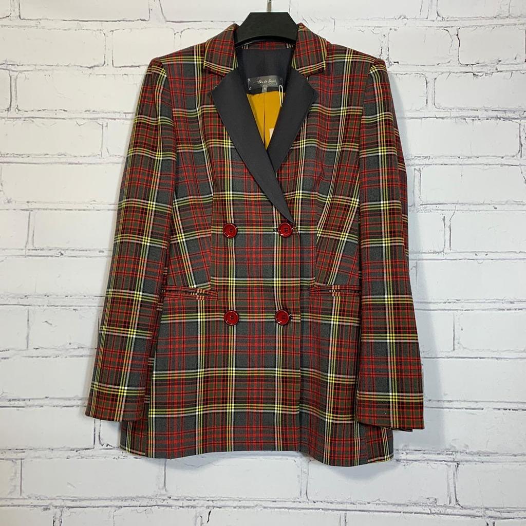 Этот двубортный жакет в клетку с контрастной отделкой воротника представляет собой стильное решение для создания элегантных образов. Он идеально подойдет для тех, кто ценит классику с современным акцентом. Жакет легко впишется как в деловой, так и в повседневный гардероб, добавляя изысканности.