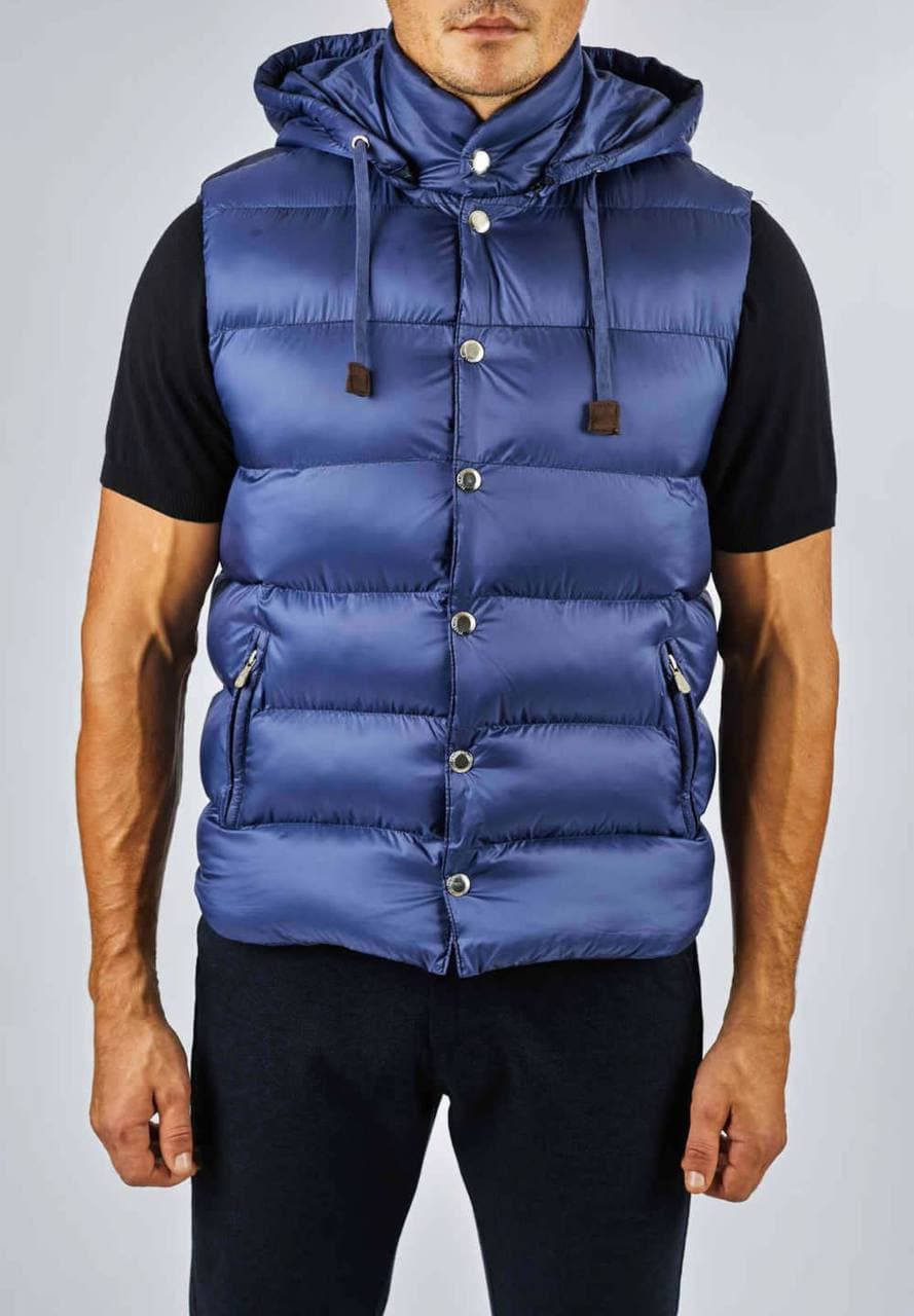 Этот синий стеганый жилет с капюшоном от Luxe-Crime - идеальный выбор для современного мужчины. Его классический крой и универсальный цвет делают его легко сочетаемым с различными образами, от повседневных до более элегантных. Жилет обеспечивает тепло и комфорт, не сковывая движений, что делает его практичным дополнением к вашему гардеробу.