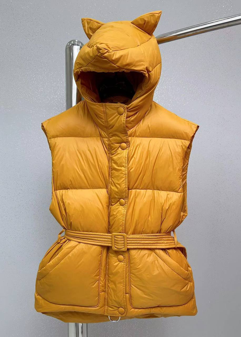 Жилет LUX-78796 – это стильный и функциональный предмет гардероба. Жилет выполнен в ярком горчичном цвете с характерной для пуховиков стежкой. Особенность модели – капюшон с ушками и пояс с пряжкой, которые добавляют оригинальности и позволяют регулировать посадку по фигуре.