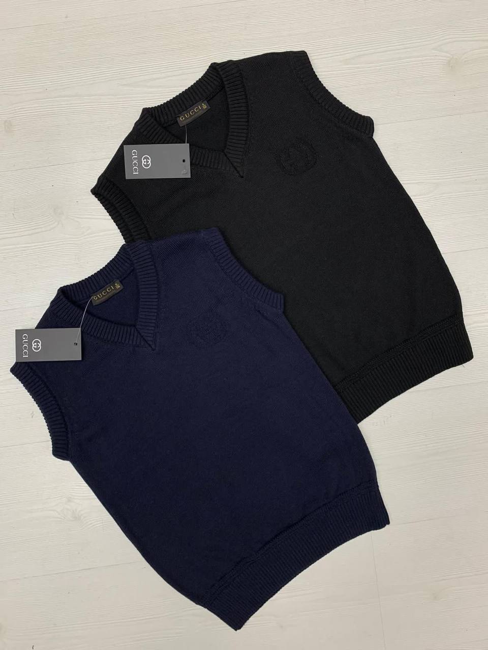 Жилет Gucci LUX-92873, представленный на фото, – это стильный предмет гардероба. Жилет выполнен в классическом стиле, имеет темно-синий цвет, что делает его универсальным для различных образов. Он отлично подойдет для создания элегантных и повседневных комплектов.