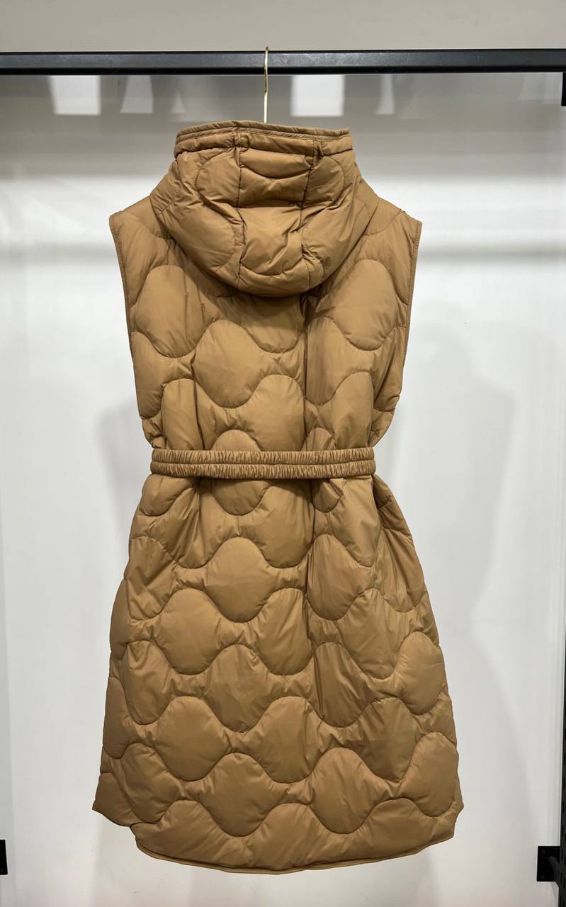 Жилет LUX-94866 от бренда представляет собой стеганый жилет с капюшоном, выполненный в современном стиле. Жилет выполнен в коричневом цвете, имеет текстурированный дизайн и пояс. Отлично подойдет для создания стильного и теплого образа.