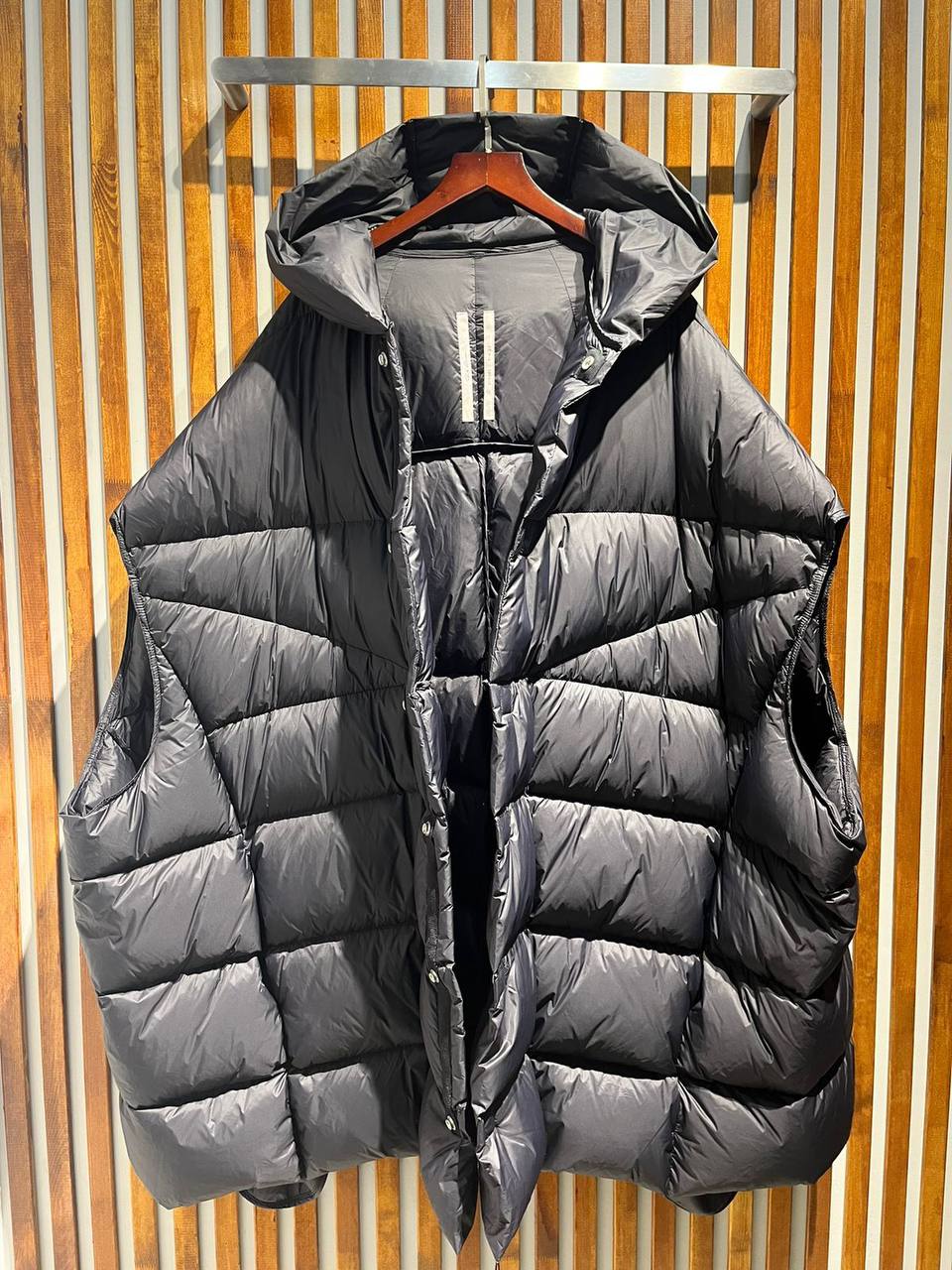 Жилет Rick Owens LUX-97365 - это воплощение современного стиля и комфорта. Этот жилет, выполненный в черном цвете, сочетает в себе функциональность и эстетику. Его объемный силуэт с капюшоном, наполненный пухом, создает ощущение тепла и уюта.